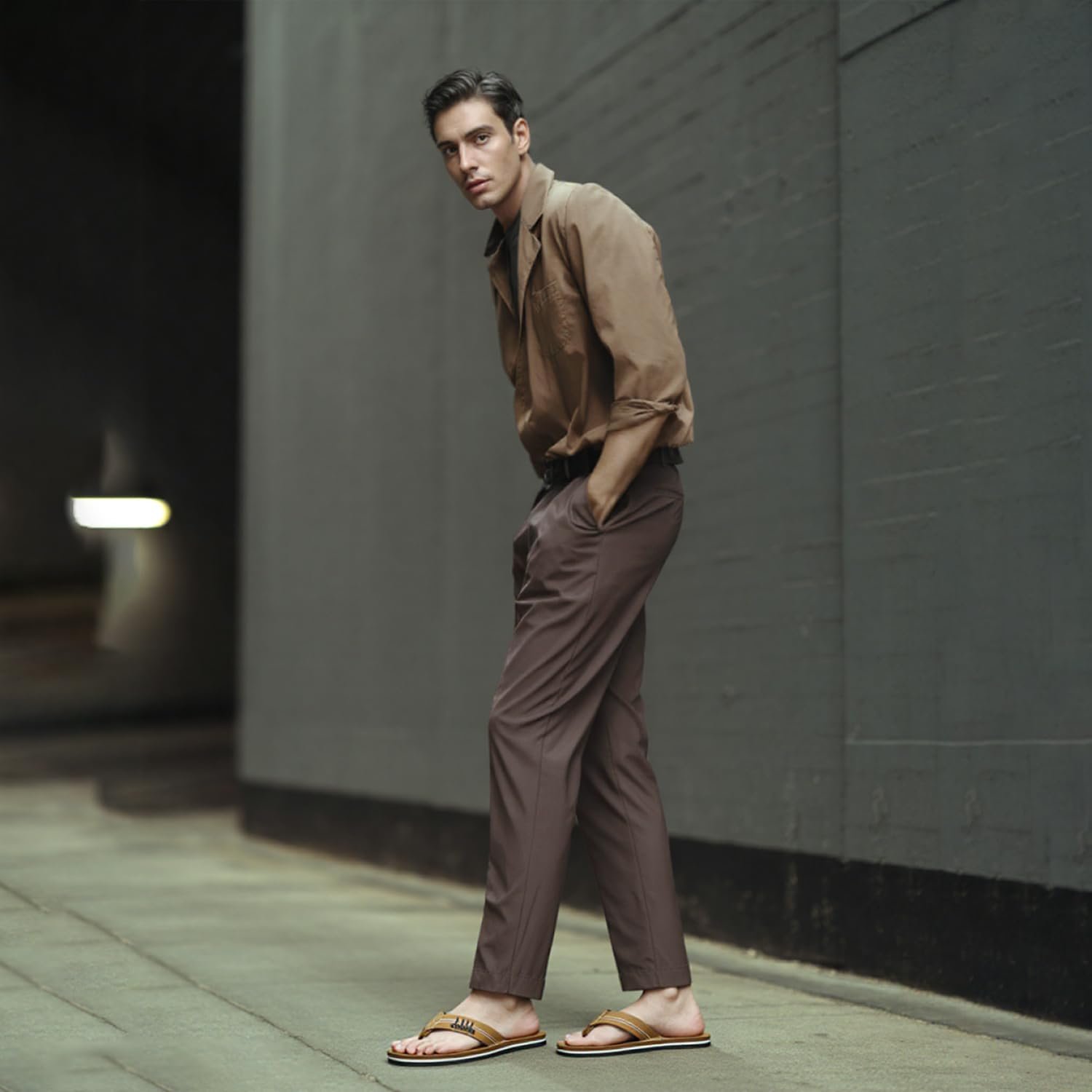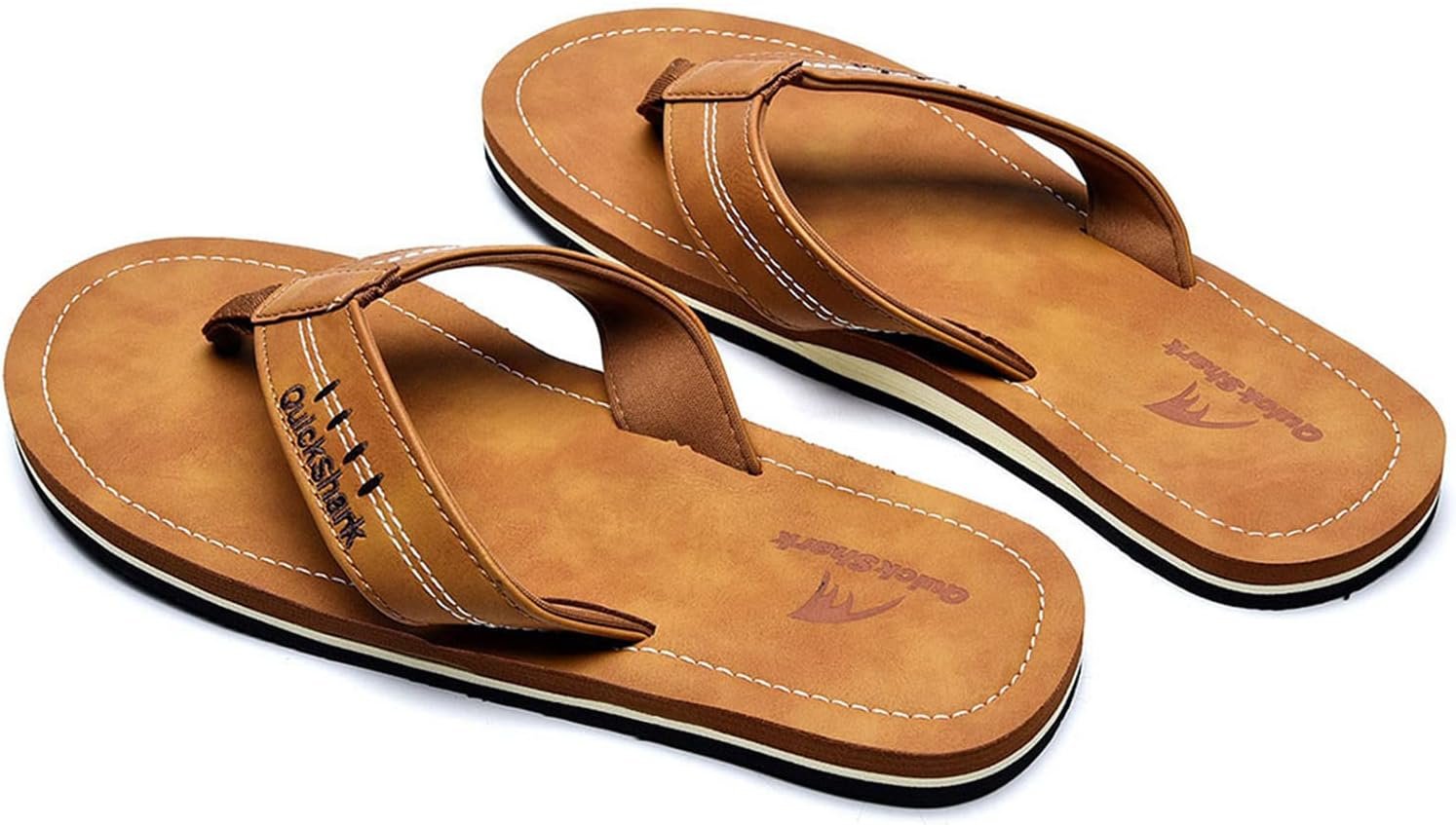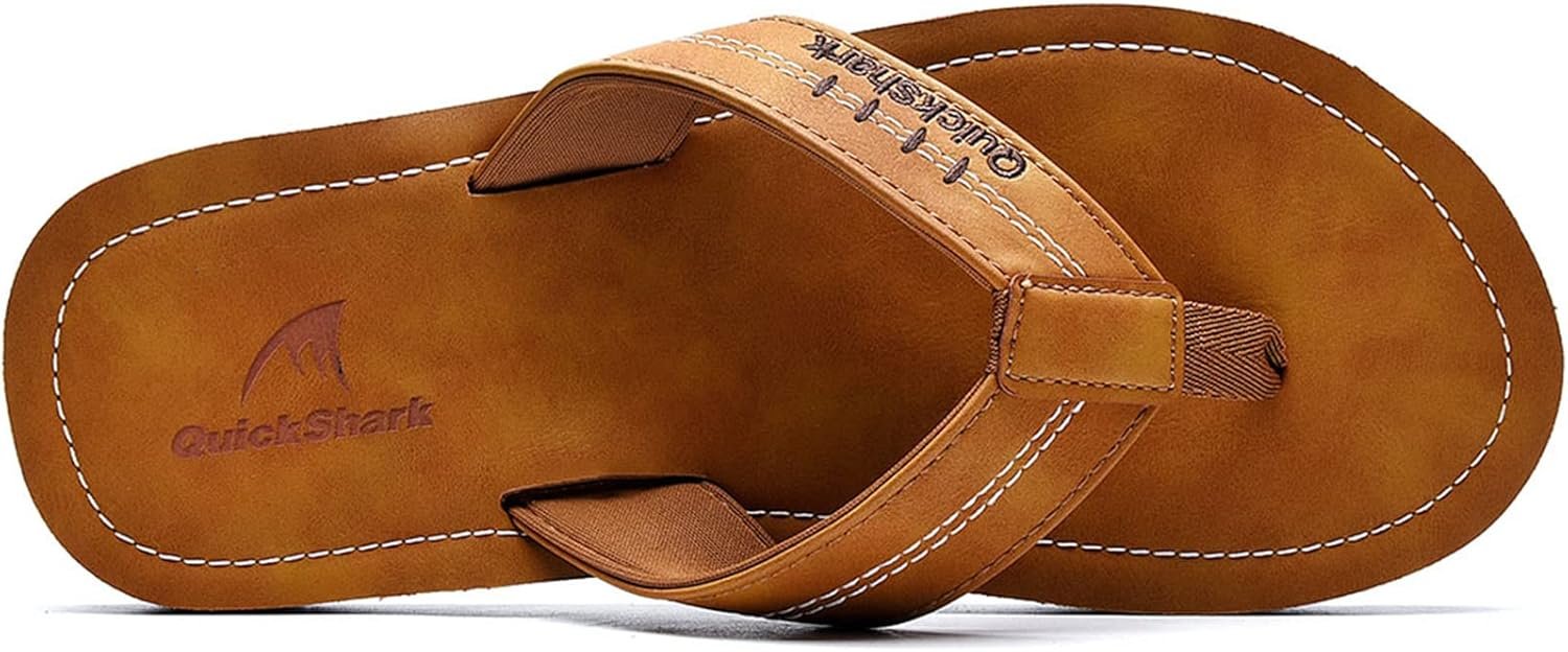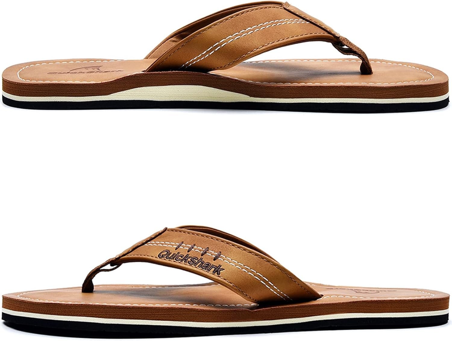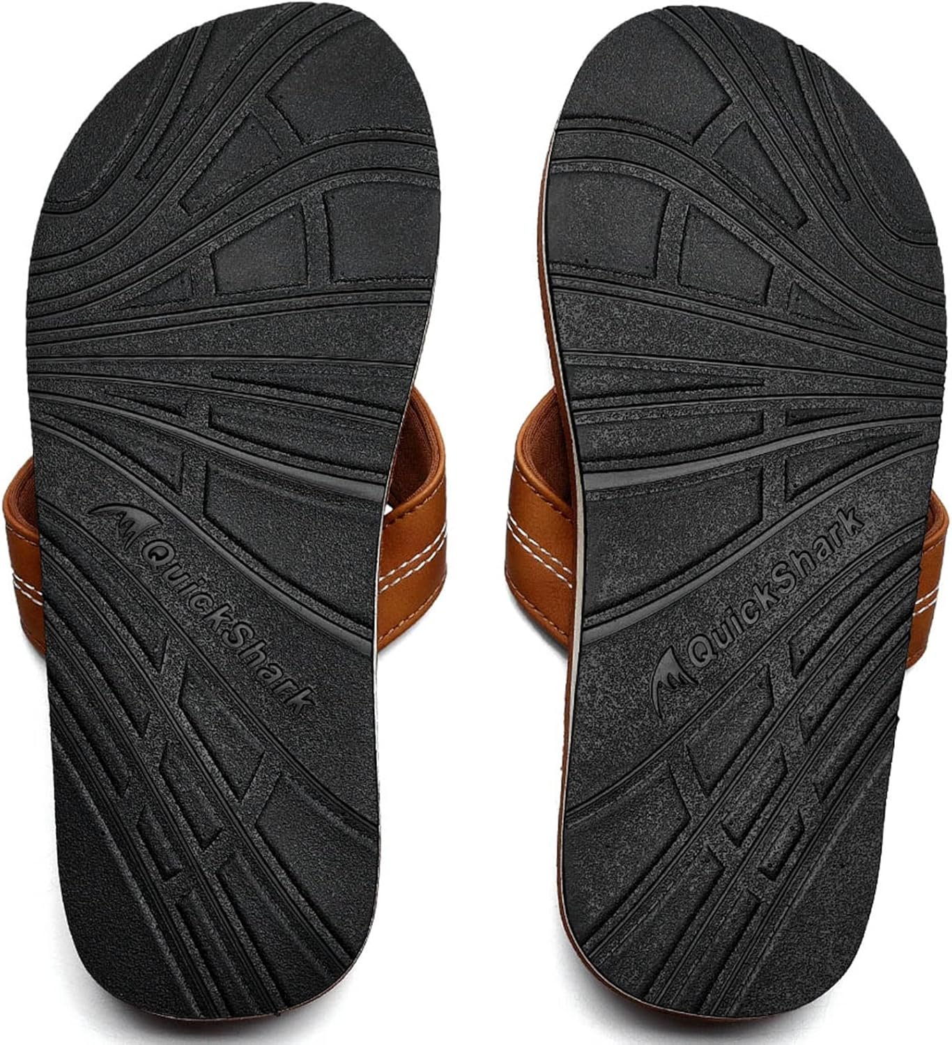 Quickshark Mens Flip Flops Leather Thong Sandals Arch Support Beach Slippers