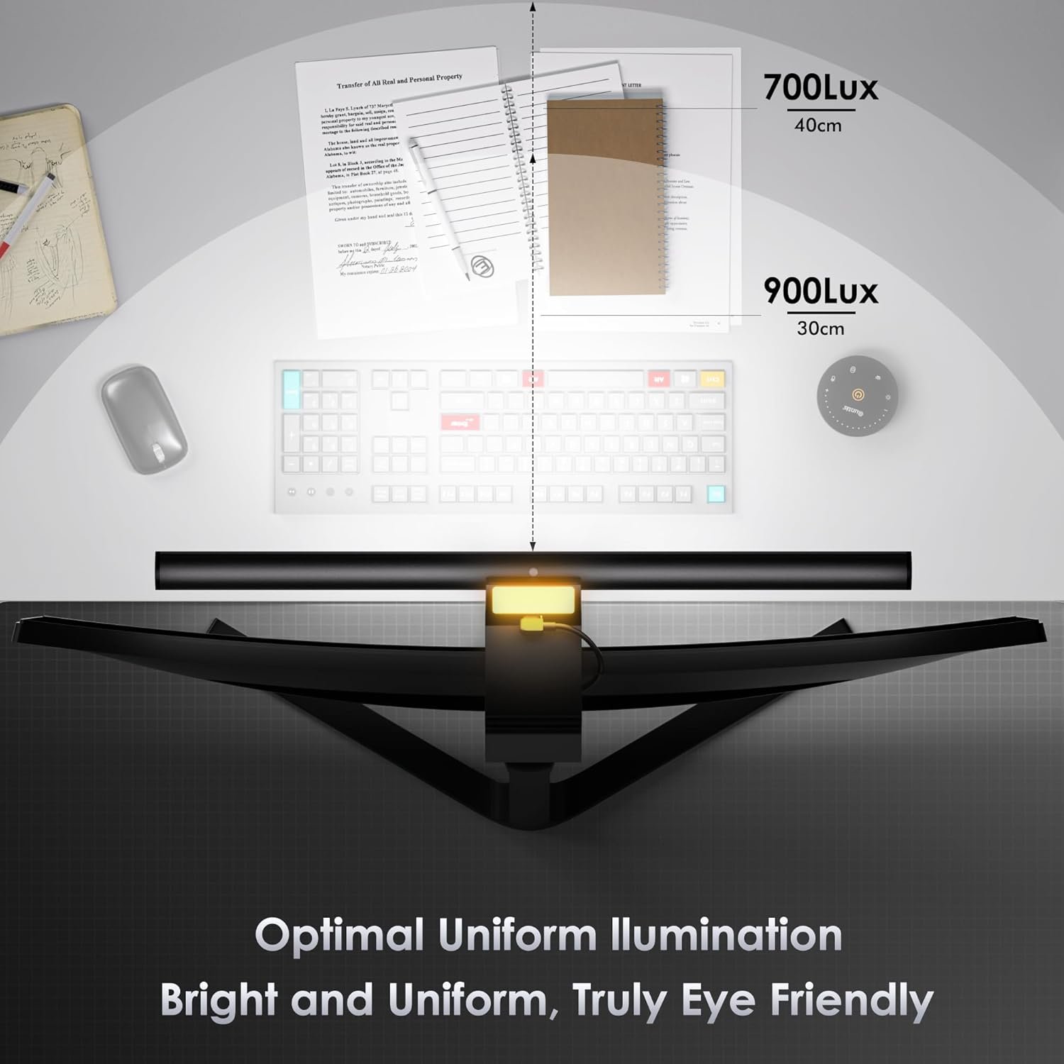Glow Pro monitor light design features dual-source lighting that balances screen brightness with your surroundings, minimizes glare and reduces eye strain.