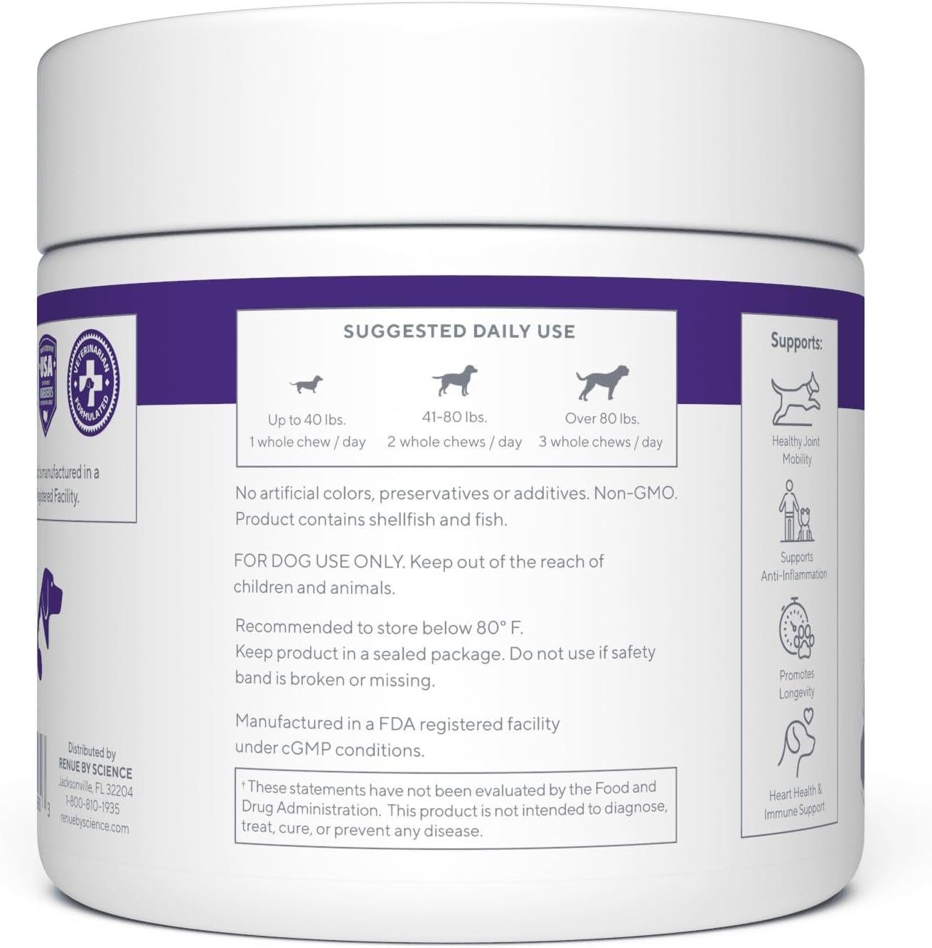 MADE IN THE USA – VETERINARIAN DEVELOPED: Formulated in collaboration with longevity experts and top veterinarians. Manufactured in ISO-Certified and cGMP certified labs with pharmaceutical-grade testing procedures. Each batch passes 4 rounds of quality testing for purity and potency. 60 soft chews per jar.