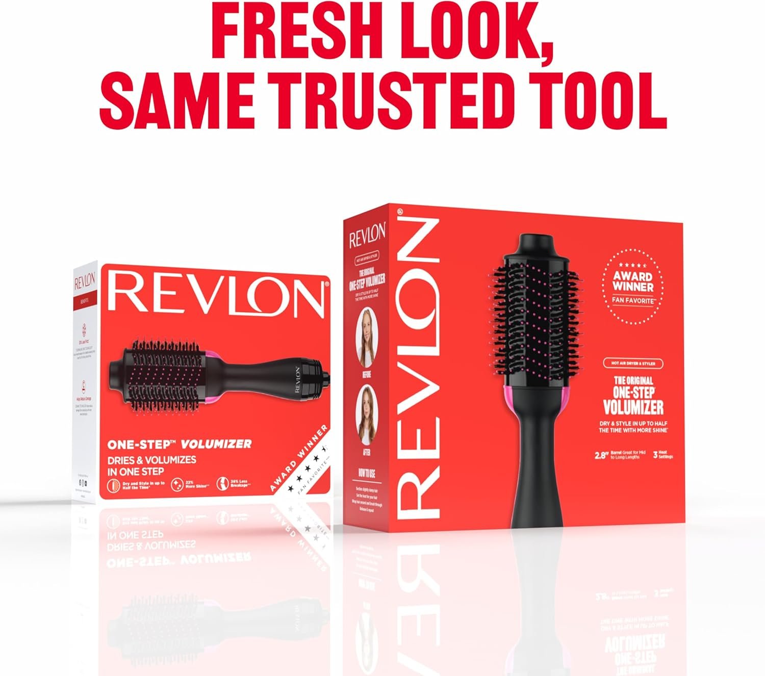 Transform your hair routine with the iconic Revlon One-Step™ Volumizer — the original blow-dry brush that delivers salon-worthy blowouts in half the time*! Featuring an enhanced motor for longer life, this powerhouse tool dries, smooths, and styles while reducing breakage by 36%**. Wave goodbye to lifeless hair! Experience 22% more shine*** and incredible volume with every stroke. The blend of natural and nylon bristles glides effortlessly through your locks, banishing frizz and leaving you with beautifully healthy-looking hair. This super-fast hot air brush takes you from damp to dazzling in a single step. Save time and money by skipping the salon and achieving stunning blowouts at home with the Revlon One-Step™ Volumizer! *Versus drying and styling separately. **Based on third-party testing of a leading blow-dryer brush in the market. ***Based on testing by an independent third-party lab.