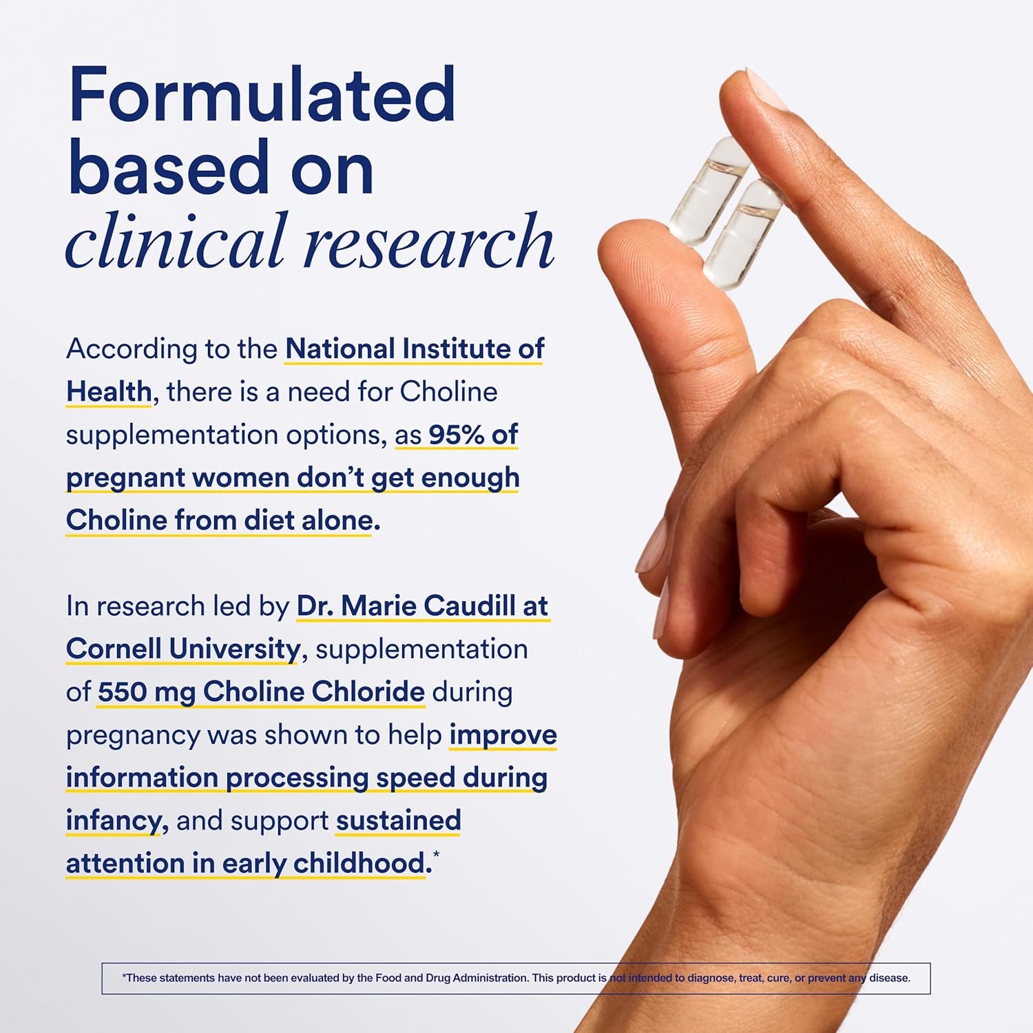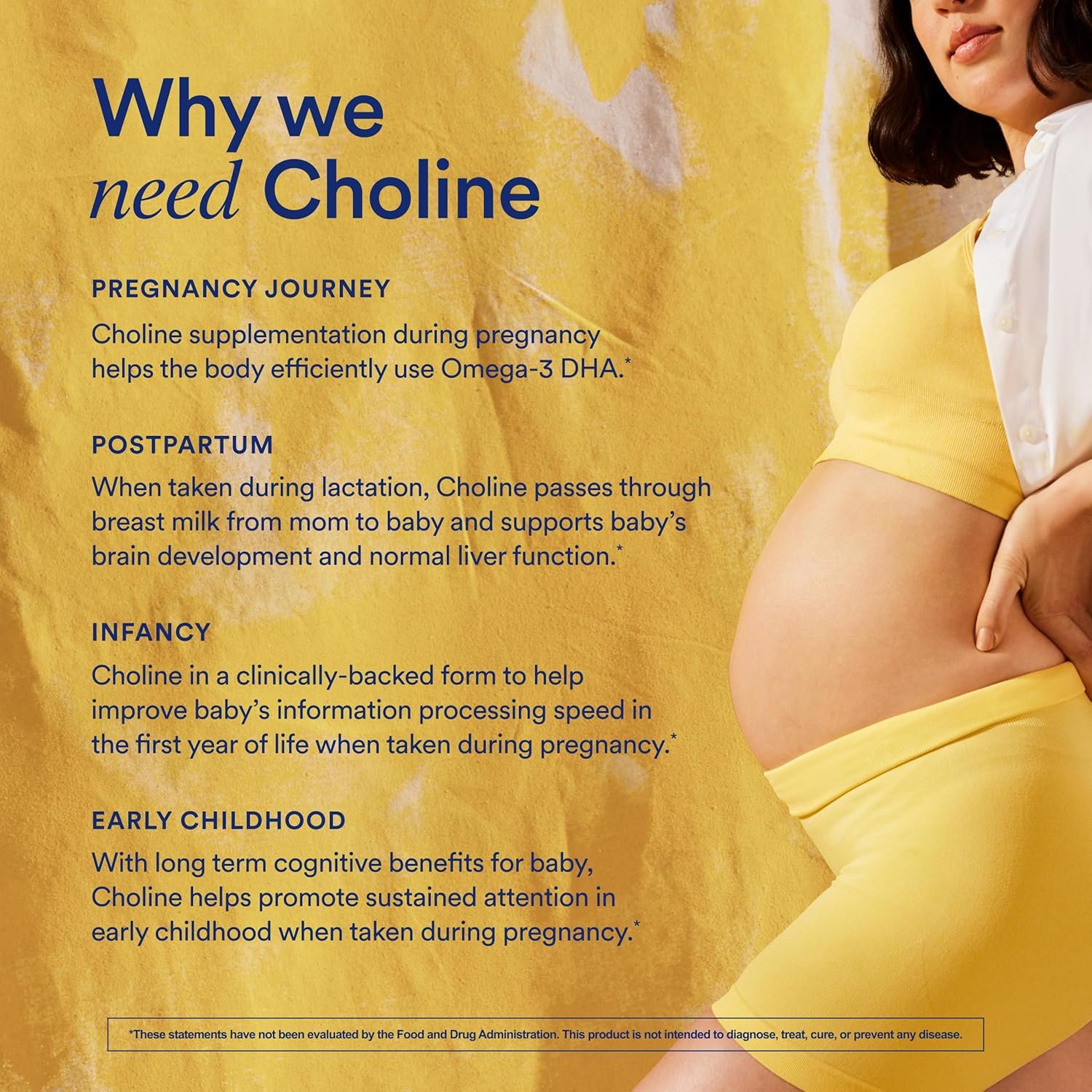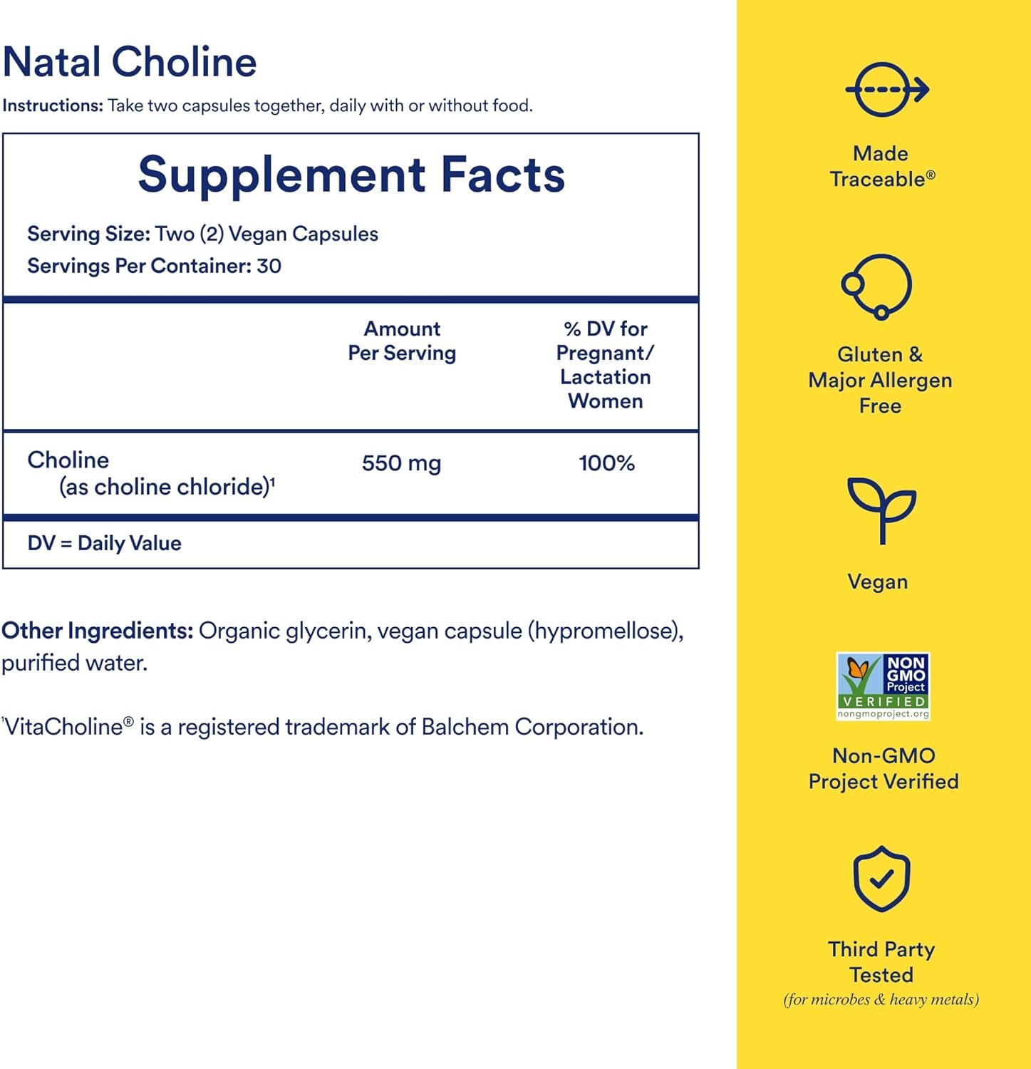 BRAIN SUPPORT FROM MOM TO BABY: Natal Choline in a clinically-backed form to support baby’s cognitive function from infancy to early childhood when taken during pregnancy.* It’s formulated with 550 mg of high potency Choline as Choline Chloride to support the increased demand for Choline during pregnancy, lactation and breastfeeding and helps the body efficiently use Omega-3 DHA during pregnancy.