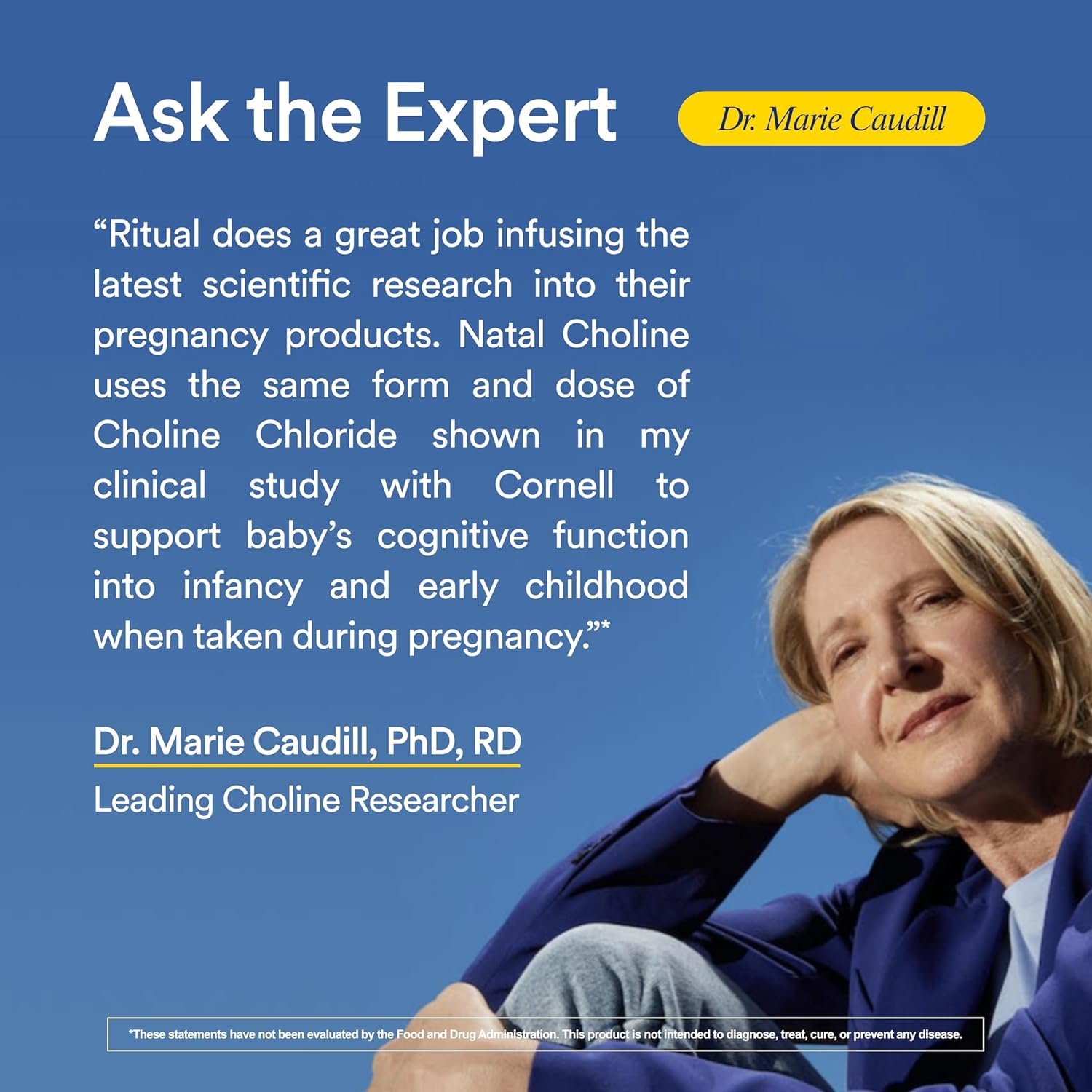 Natal Choline was inspired by groundbreaking research led by leading Choline researcher Dr. Marie Caudill, at Cornell University, which found positive results for baby’s brain health at 550 mg Choline during pregnancy.*