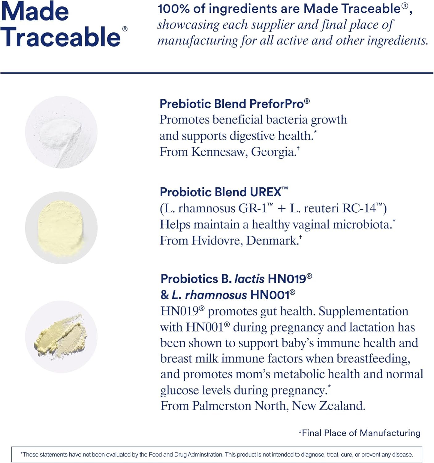 Clinically studied biotics to support digestive health, vaginal health, and baby’s immune health.*