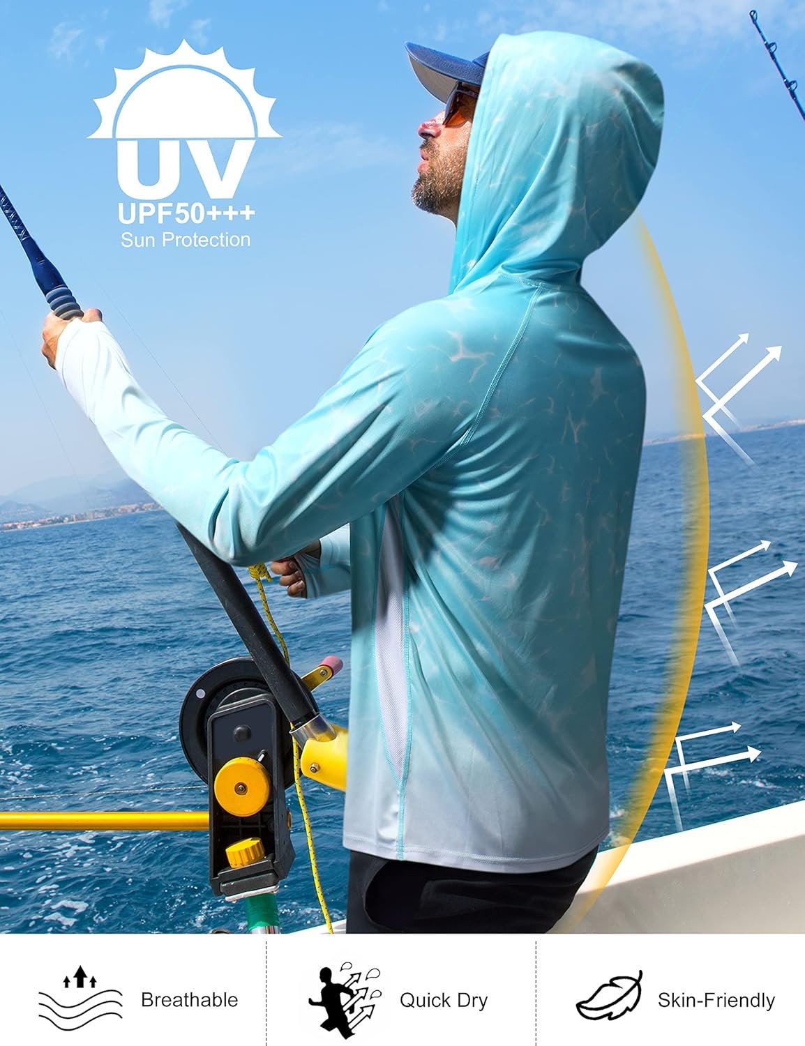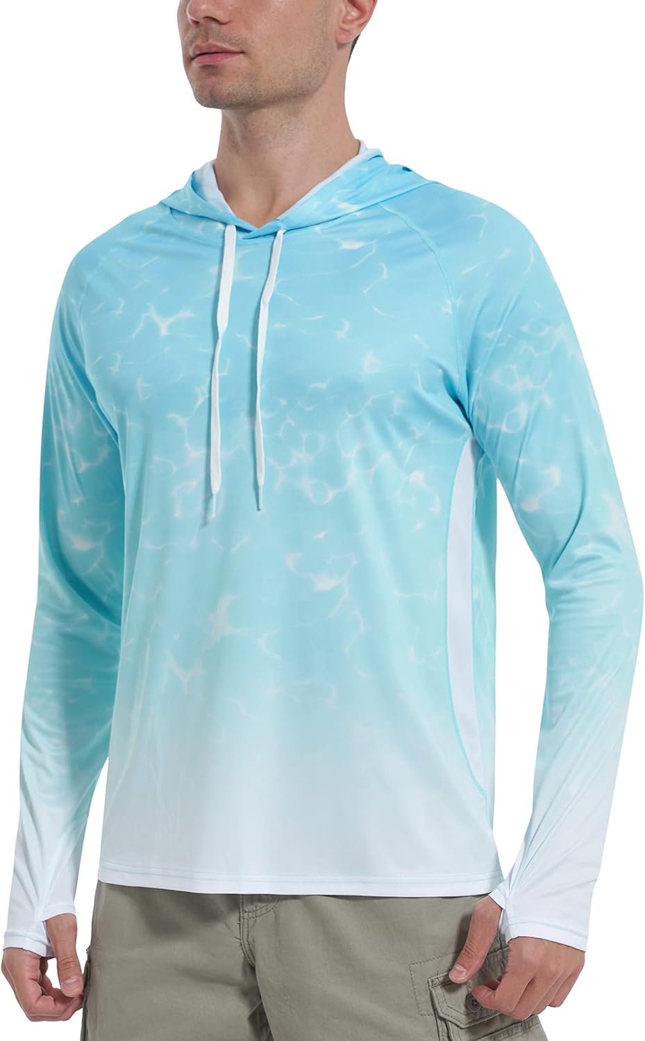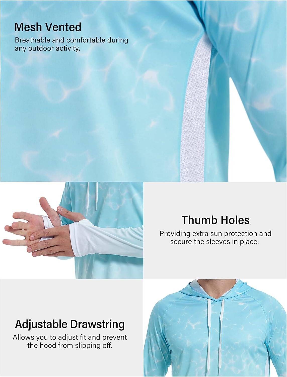 Roadbox Men’s Performance Fishing Hoodie, UPF 50+ UV Sun Protection Rash Guard, Outdoor Long Sleeve Water Hiking Swim Shirts