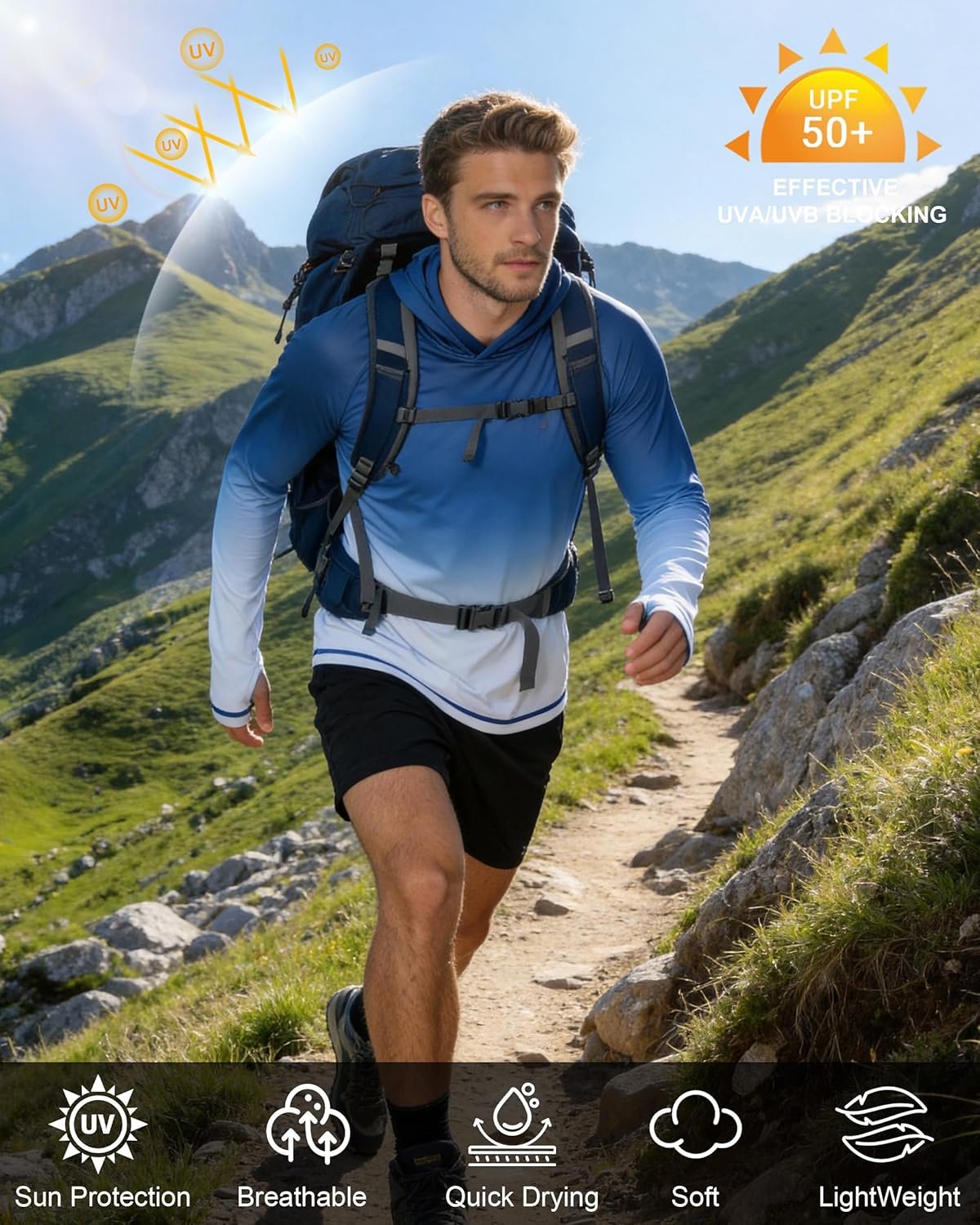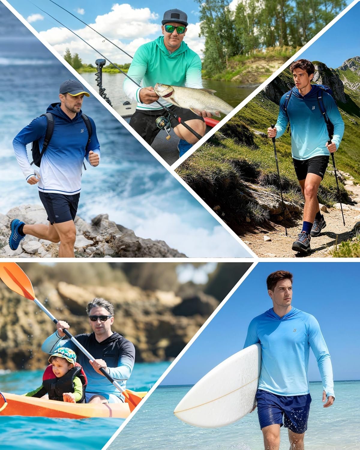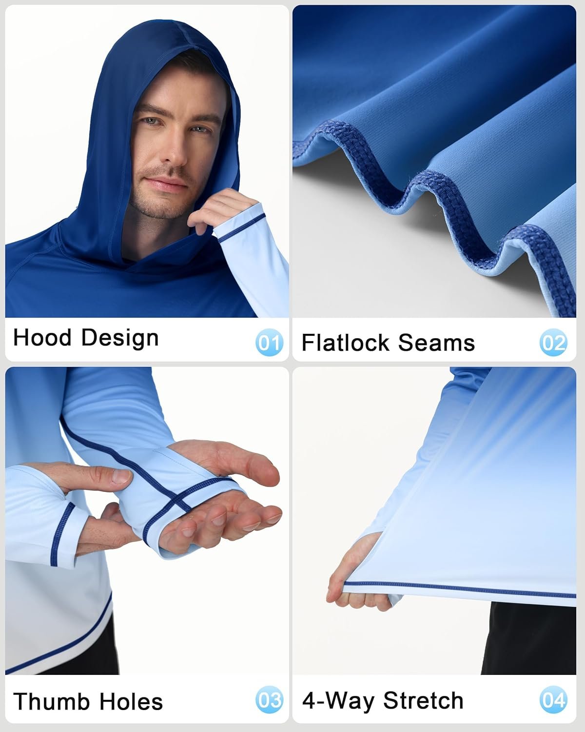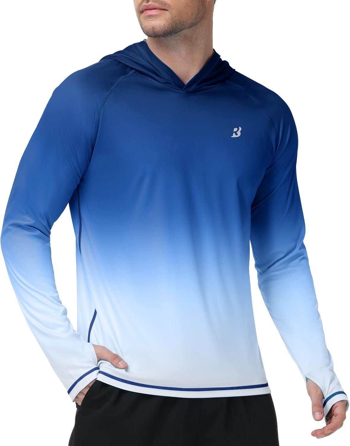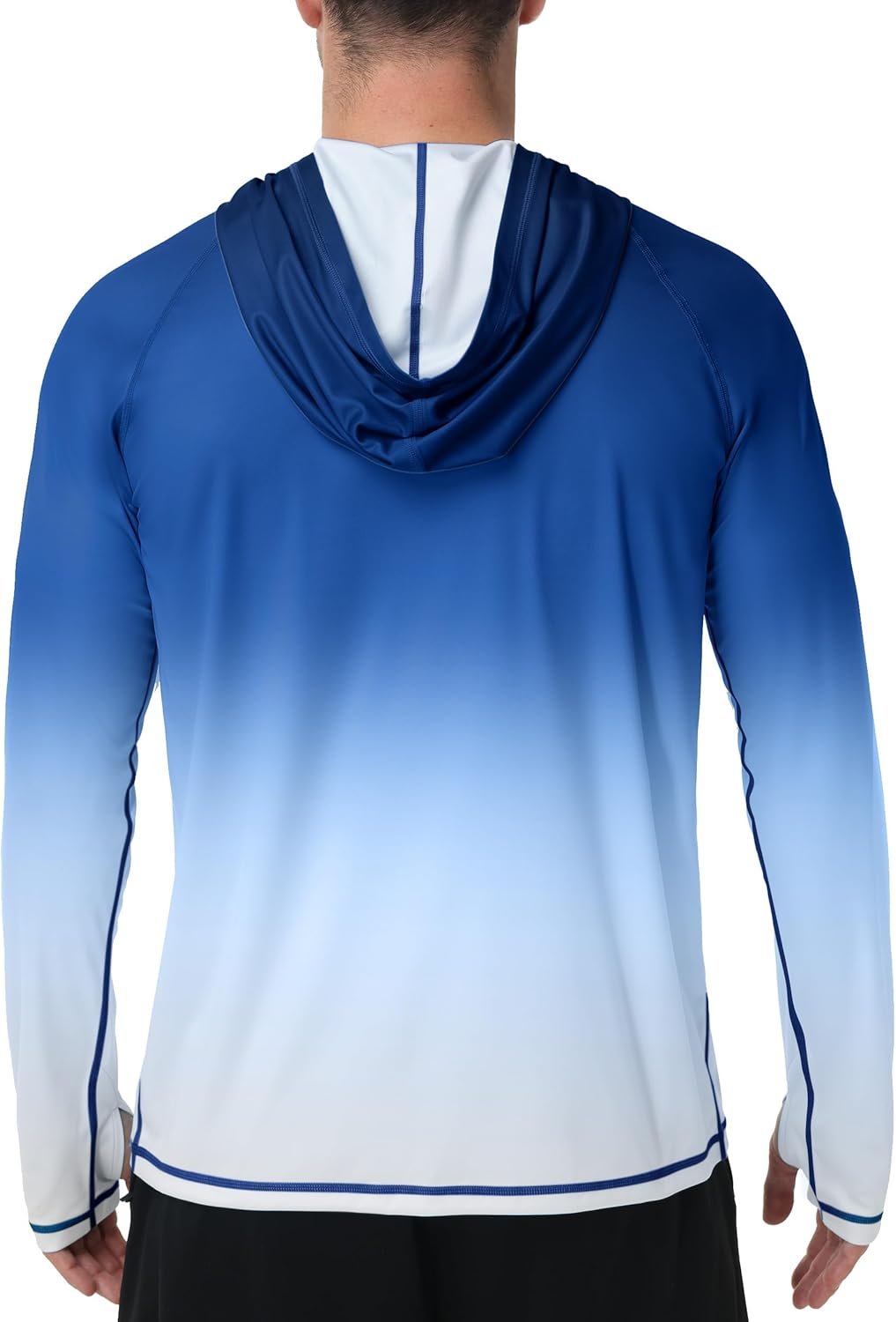 Roadbox Men’s UPF 50+ Sun Hoodie, UV Hooded Long Sleeve Fishing Shirts, Lightweight SPF Rash Guard for Outdoor Hiking Swim