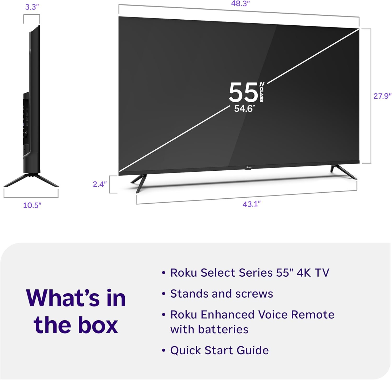 Roku Smart TV – 55-Inch Select Series, 4K HDR TV – Roku TV with Enhanced Voice Remote – Flat Screen LED Television with Wi-Fi for Streaming Live Local News, Sports, Family Entertainment