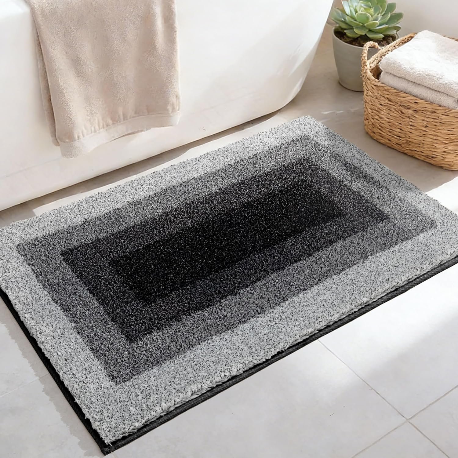 Ultra-Absorbent Bathroom Rug: Bathroom rug made from high-quality microfiber fabric, the fibers are dense and soft, providing excellent water absorption. Keeps your feet dry and comfortable at all times