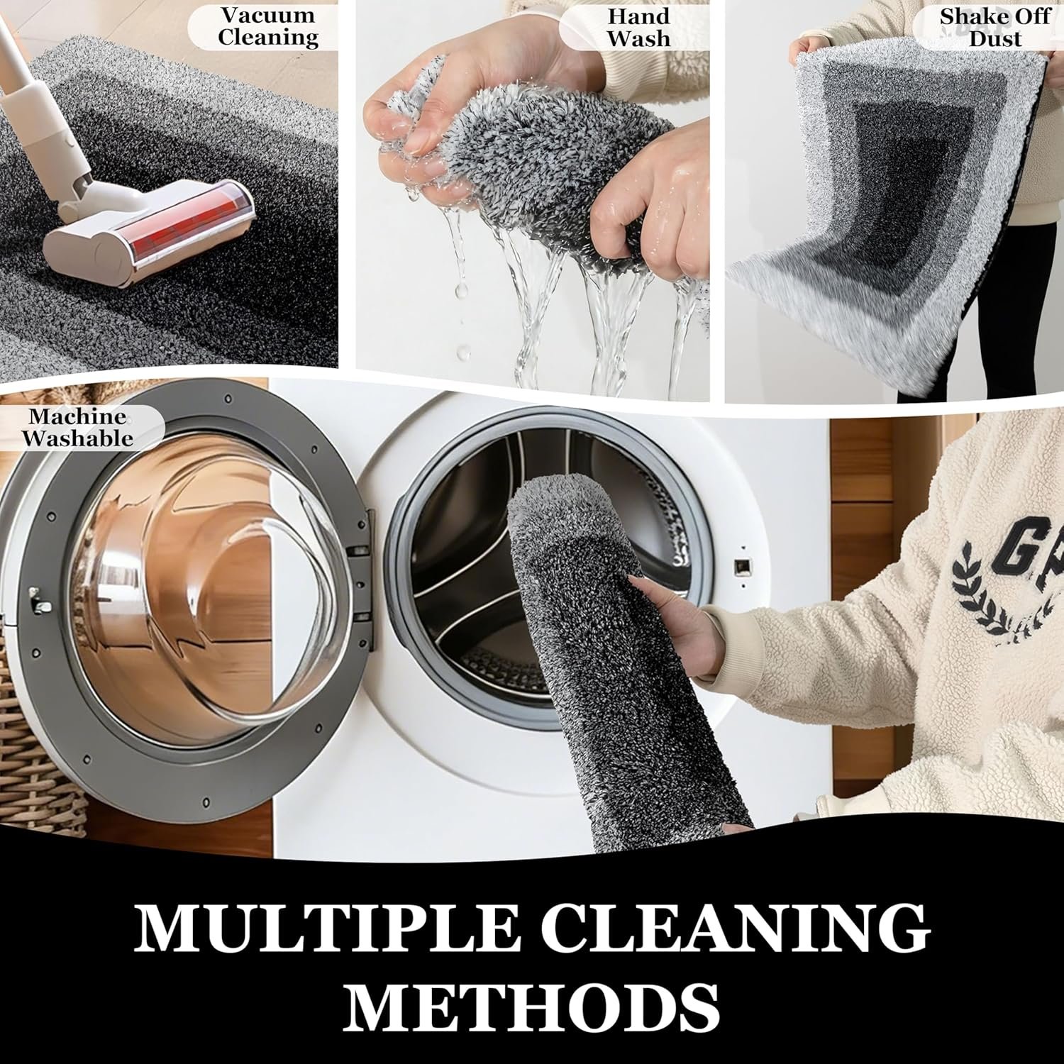 Machine Washable & Easy Care: The bathroom mat is machine washable. Simply wash gently in cold water with mild detergent, then air dry or tumble dry on low. High-quality microfiber and edging craft resist fading, shedding, and shrinking. Even after repeated washing, it remains fluffy and soft, looking like new for long-term use