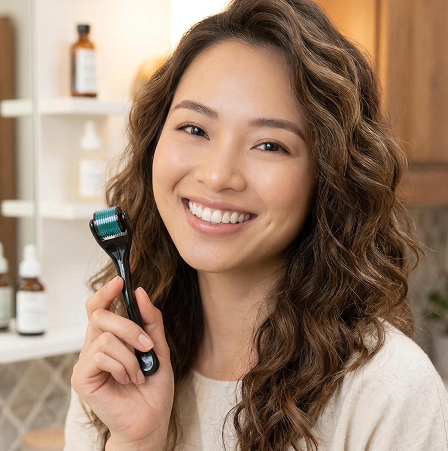 ROSELYNBOUTIQUE Derma Roller for Men & Women – Personal Cosmetic Beauty Tool 0.25mm – Titanium(Black Blue)