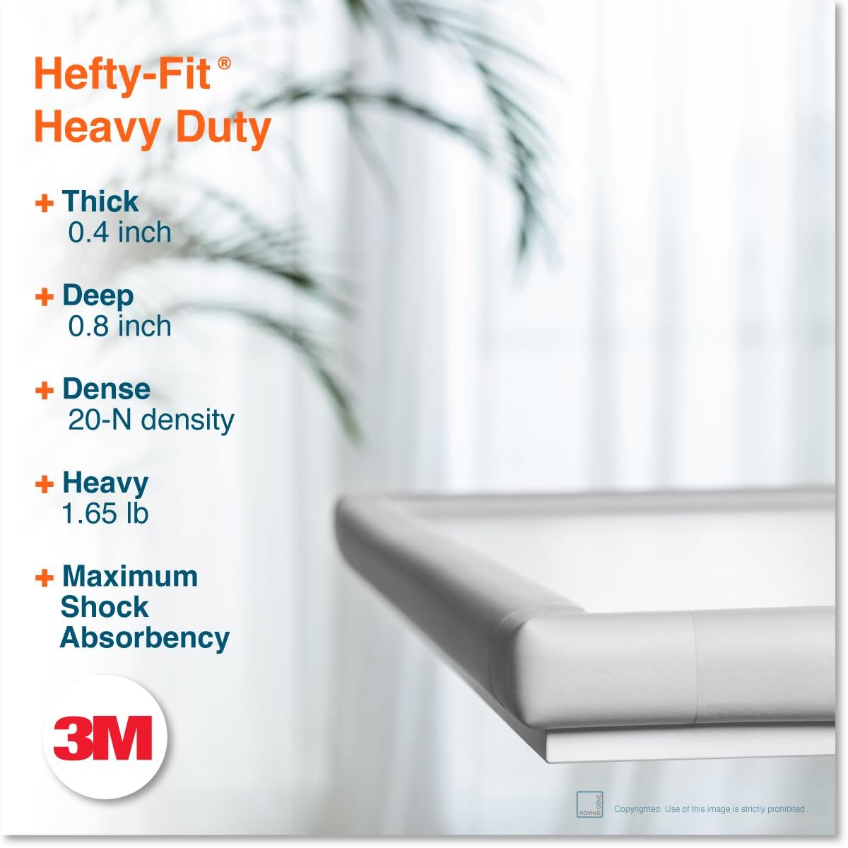 Childproofing Products. Corner and Edge Protector for Baby Proofing Furniture and Fireplace. HeftyFit HEAVY-DUTY PREMIUM RUBBER FOAM: Shore A 20-N density / 0.4-inch thick / 0.8-inch deep – maximum impact absorbent.