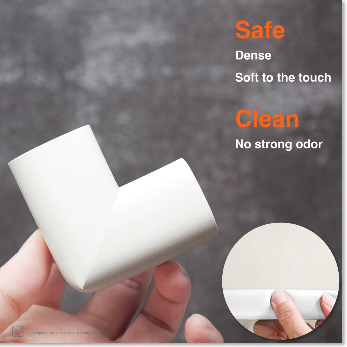 Roving Cove HeftyFit Edge Corner Protector Baby Proofing (Large 18ft Edge 8 Corners), Heavy-Duty, Soft NBR Rubber Foam, Furniture Fireplace Safety Bumper Guard, 3M Adhesive, Oyster White (Off White)
