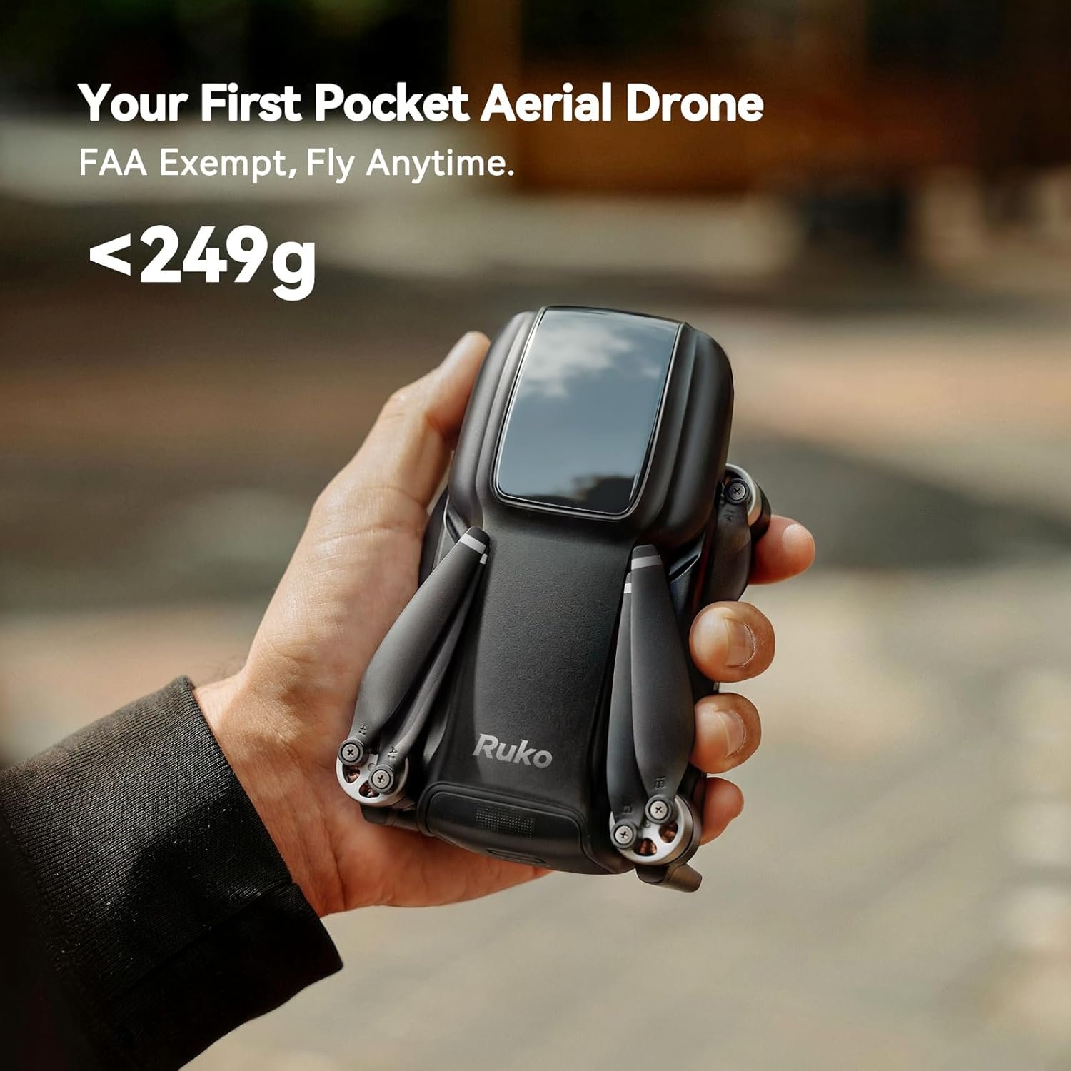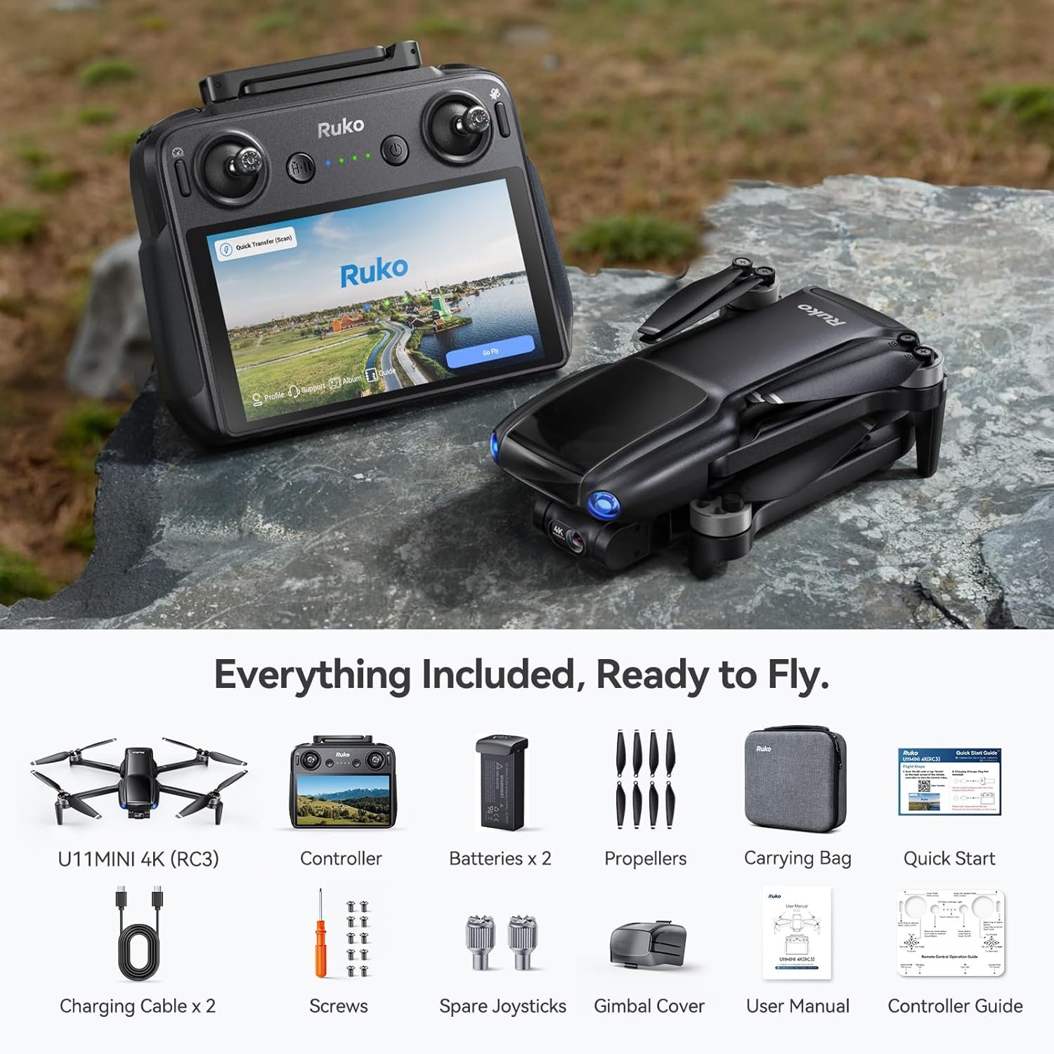 Ruko U11MINI 4K (RC3), Professional 8K Drone with 5.5″ Touchcreen, Drones with camera for Adults 4K Video, 3-Axis Gimbal, 20000ft FPV Transmission, Under 249g FAA Exempt, Beginner (64-Min Flight)