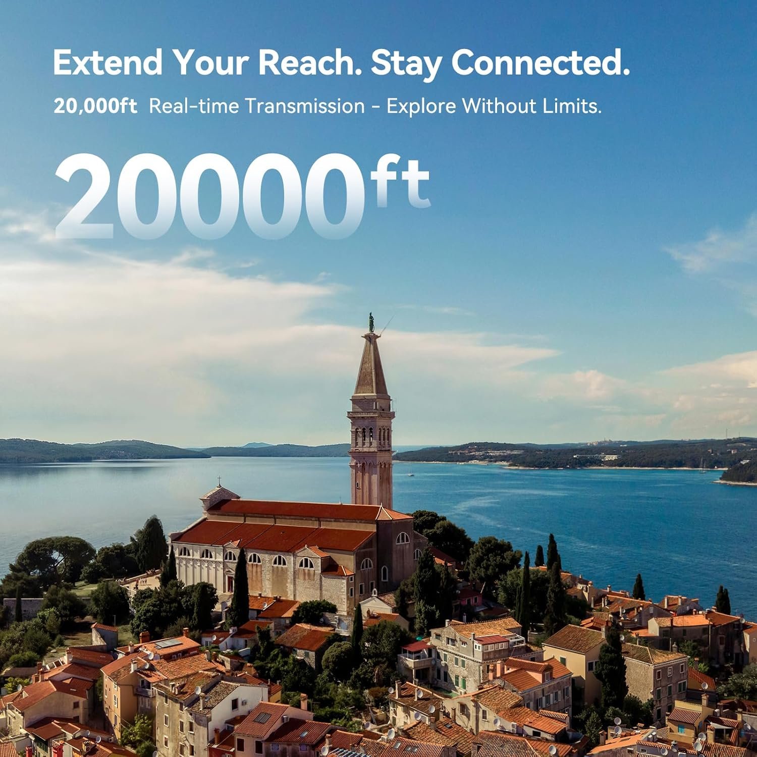 【20,000ft Range Transmission】20,000ft Range Transmission: Fly up to 20,000ft via the R2 digital system for a stable live feed. Operating without Wi-Fi, it ensures superior signal penetration and a lag-free viewing experience in open fields or diverse landscapes.