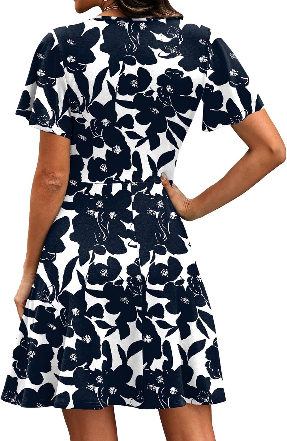 RUMIA Womens Casual Dresses Wrap V Neck Dress A-Line Ruffle Sleeve Summer Sundress Fashion 2026
