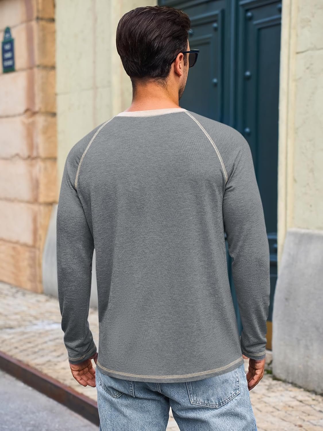 Mens Long Sleeve Casual Basic Crewneck T-Shirt Lightweight Vintage Tee Tops