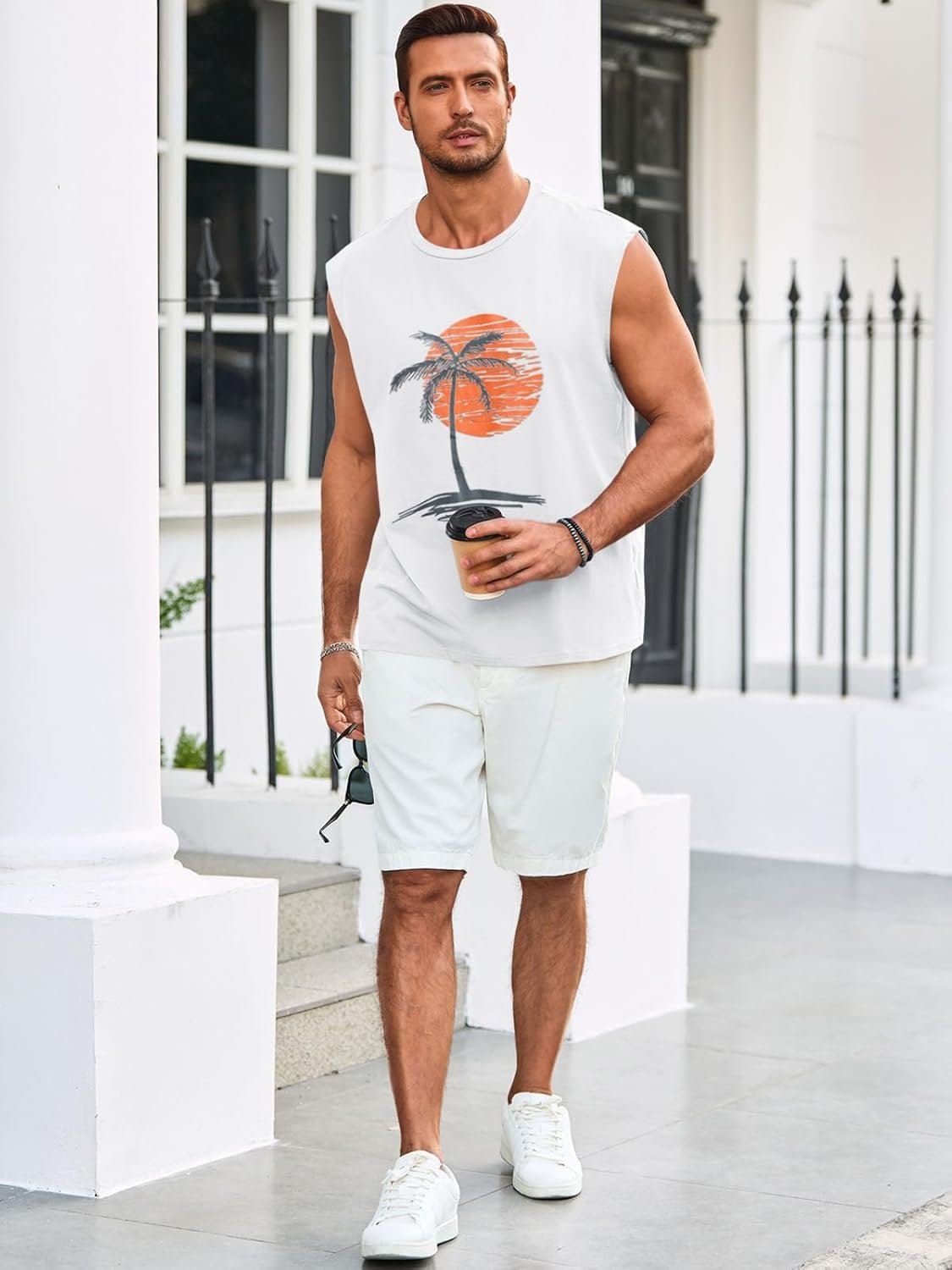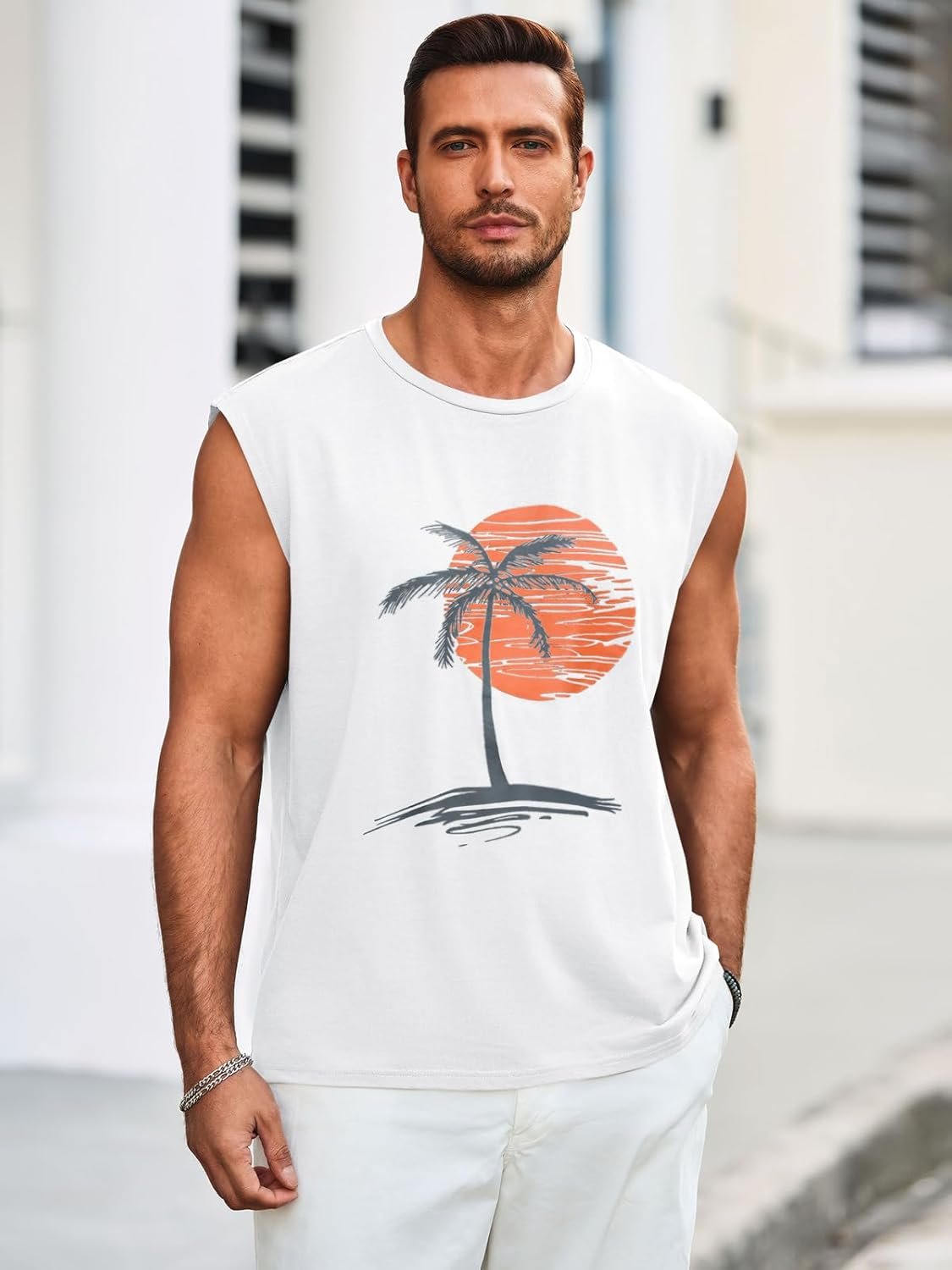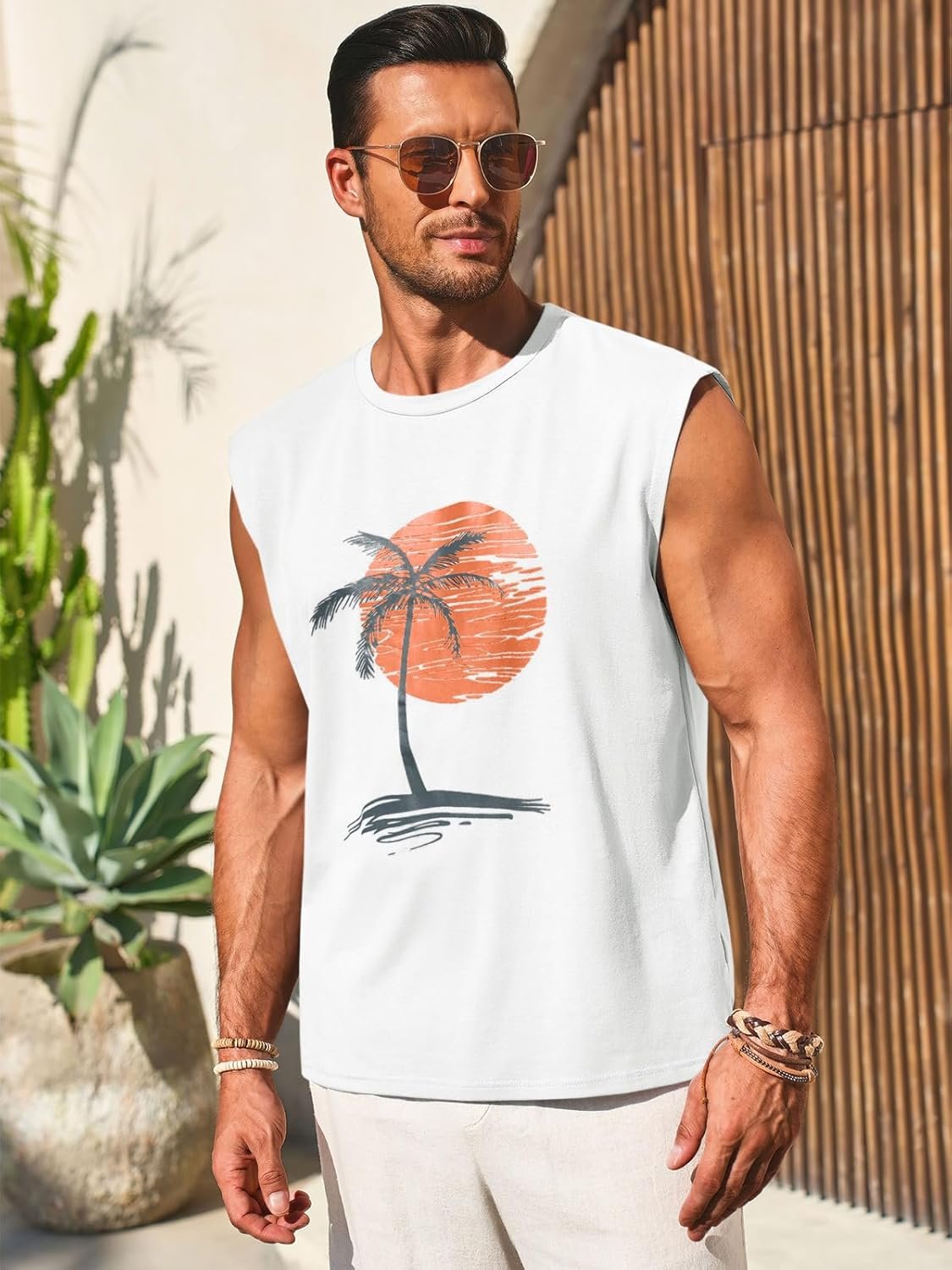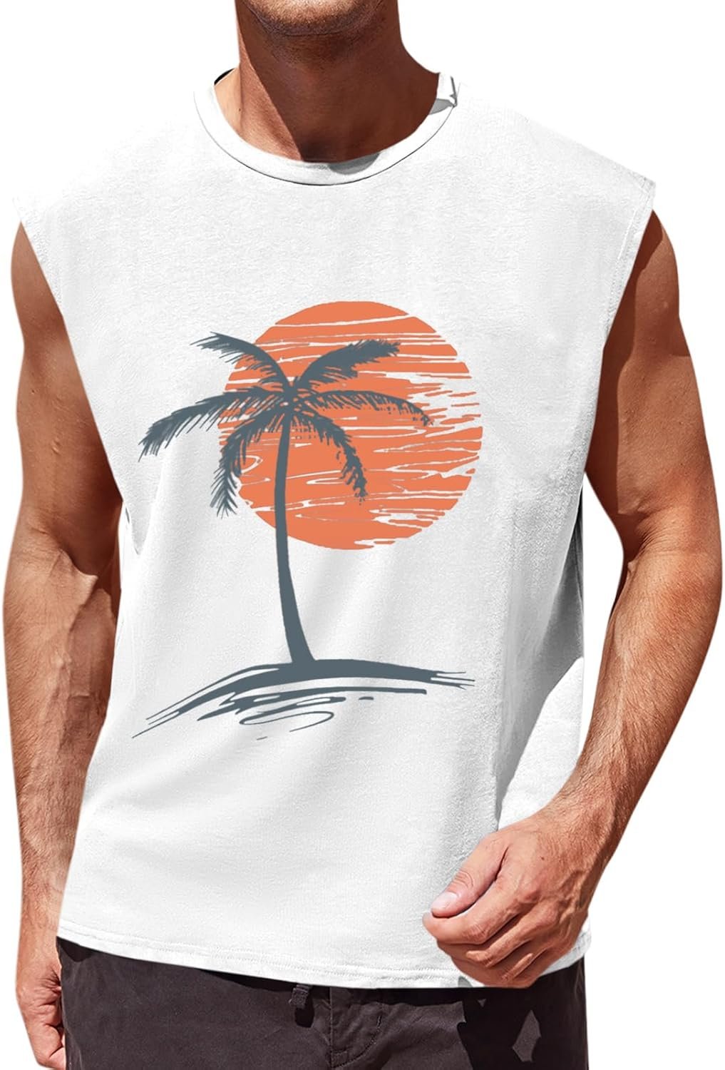 Runcati Mens Sleeveless Tank Tops Workout Gym Muscle Shirts Palm Tree Vintage Hawaiian Summer Beach T Shirts
