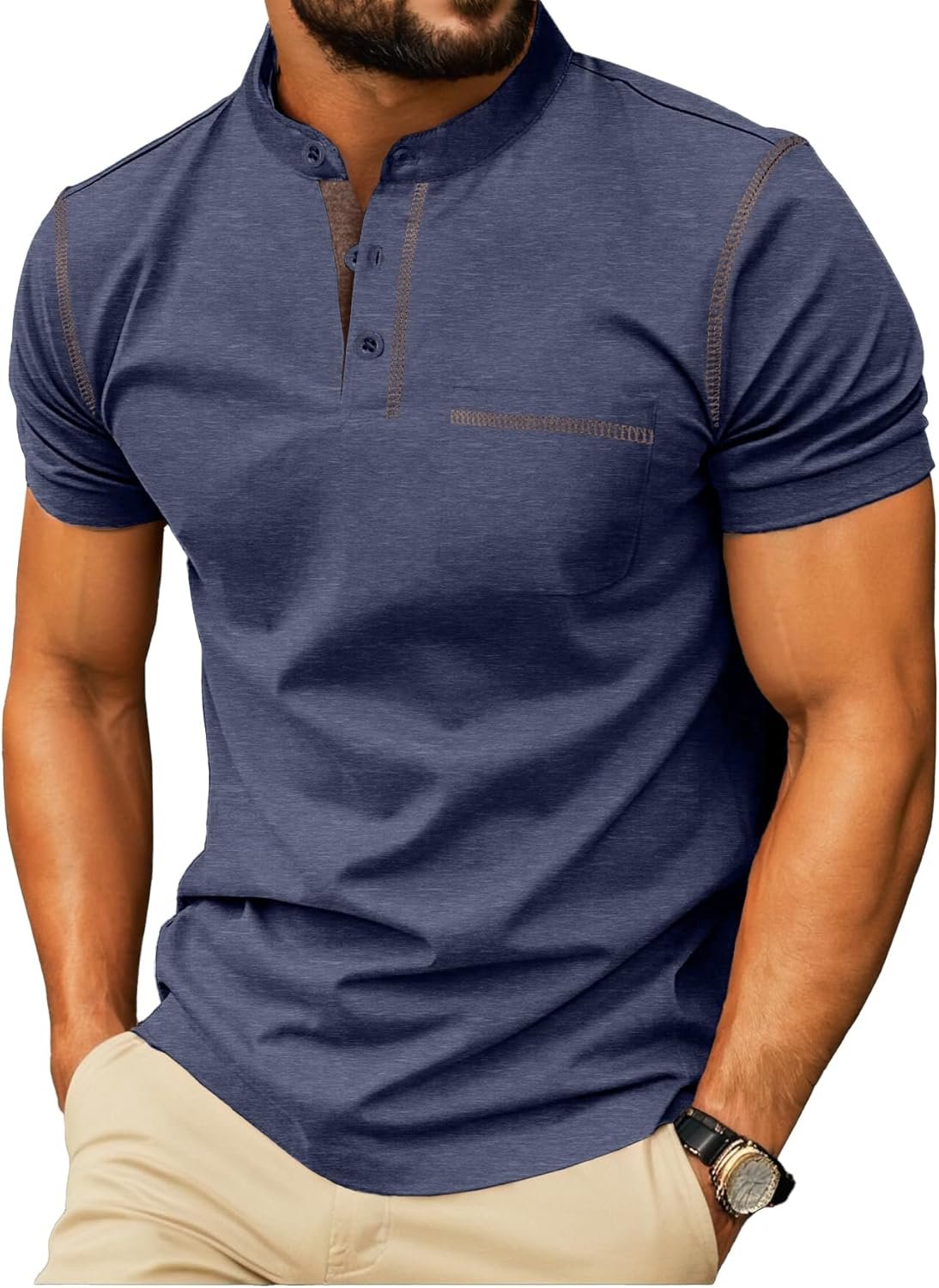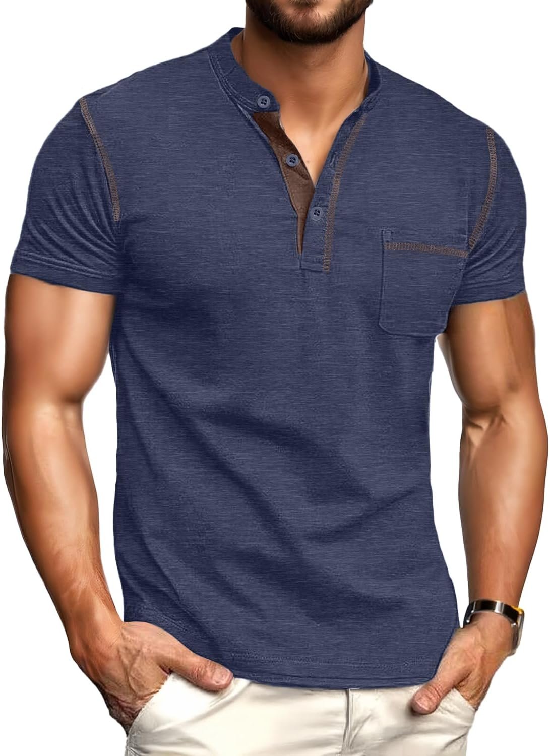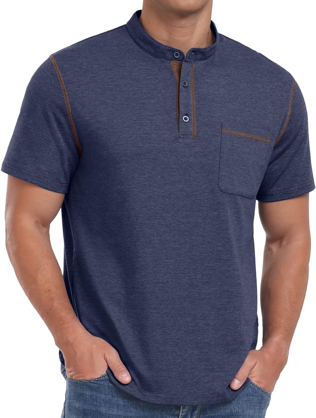 Sailwind Mens Henley Shirts Short Sleeve Summer Casual Classic Cotton T Shirts Pocket Button Shirt