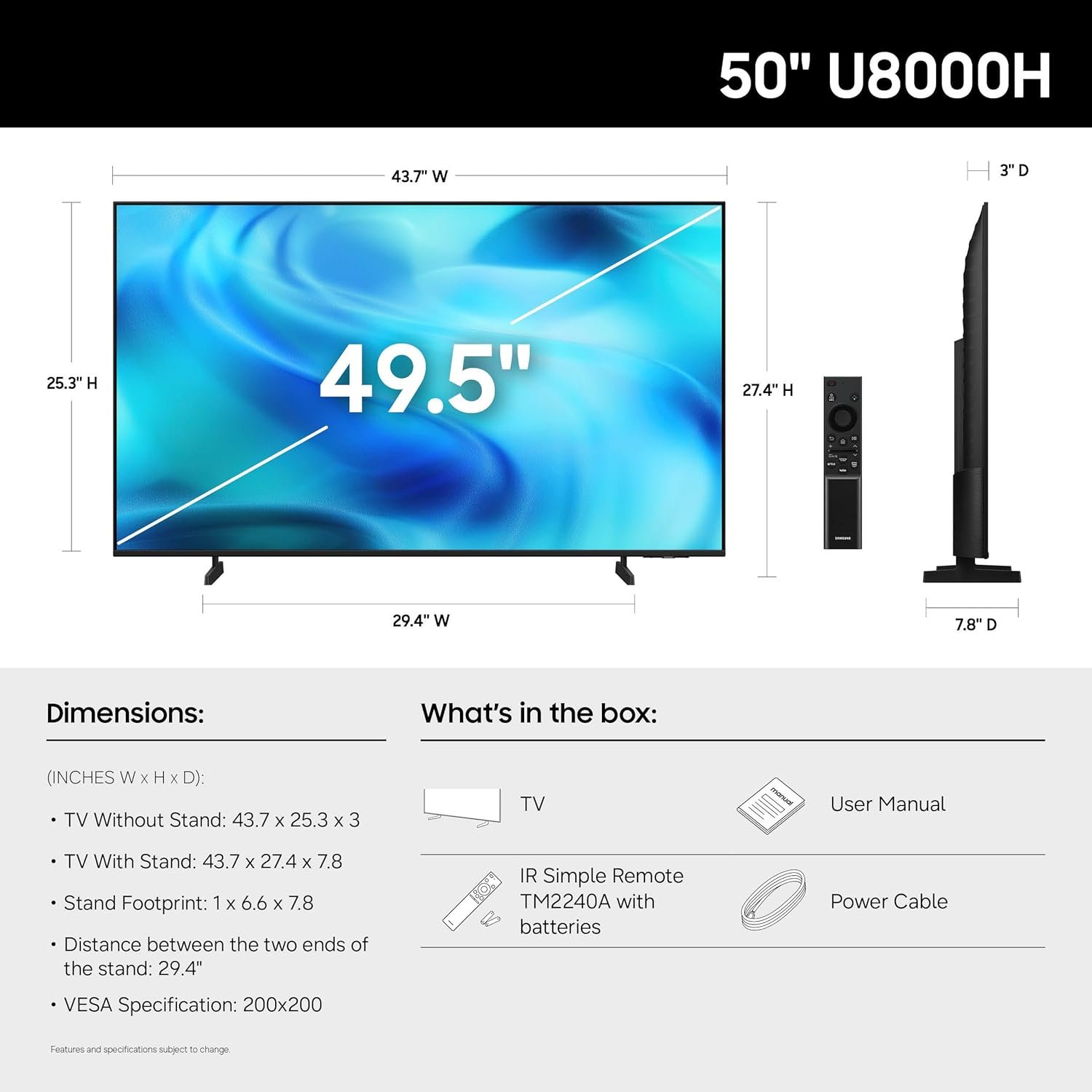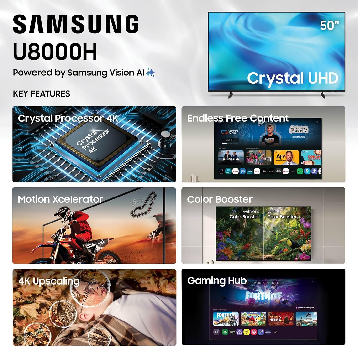 Samsung 50-Inch Class Crystal UHD U8000H Series Samsung Vision AI Smart TV (2026 Model, 50U8000H) Crystal Processor 4K, Endless Free Content, Motion Xcelerator, Color Booster, Alexa Built-in