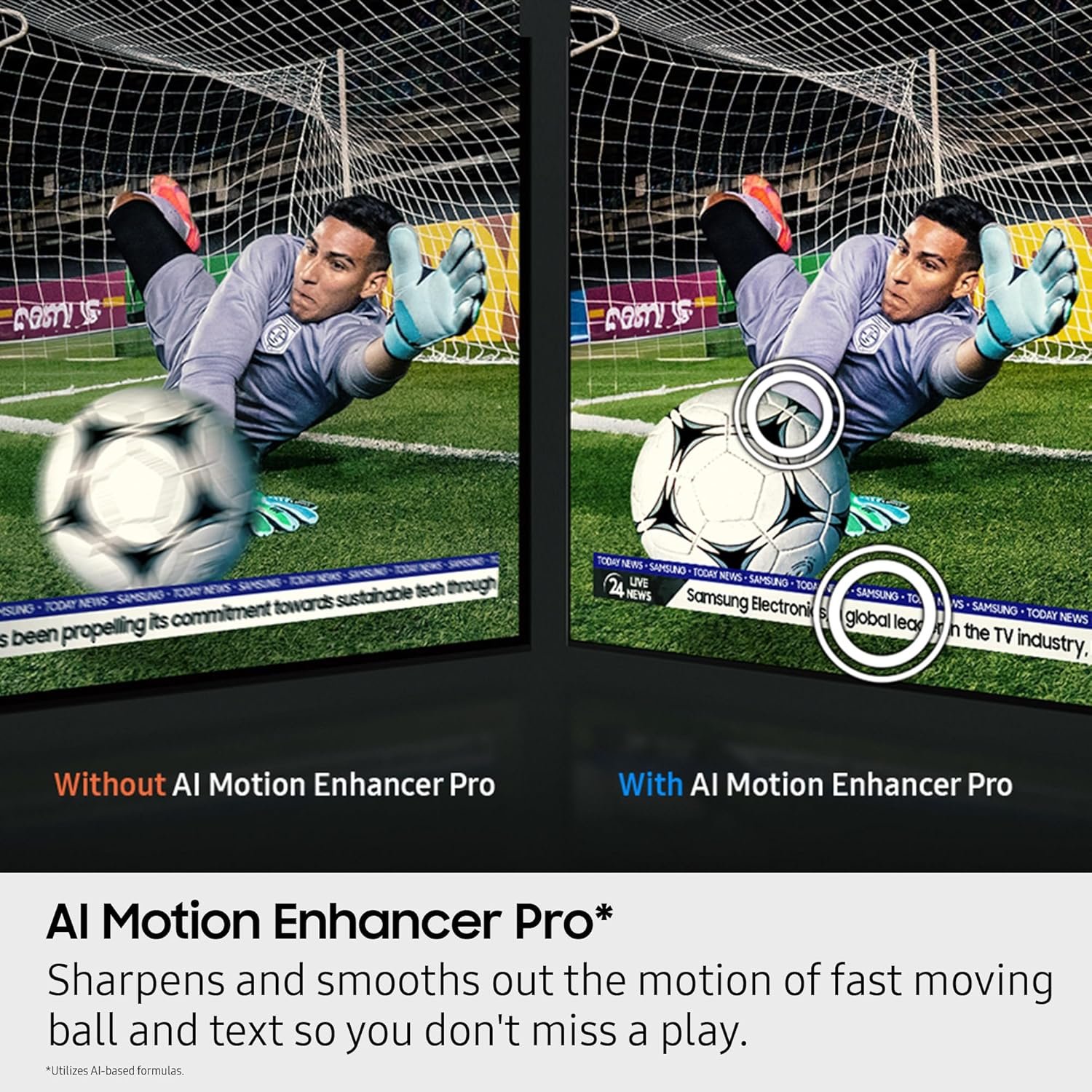 KEEP YOUR EYE ON THE BALL: The AI processor smooths the motion of fast-moving balls and text, reducing blur and flickering, so you don’t lose sight of the action.*