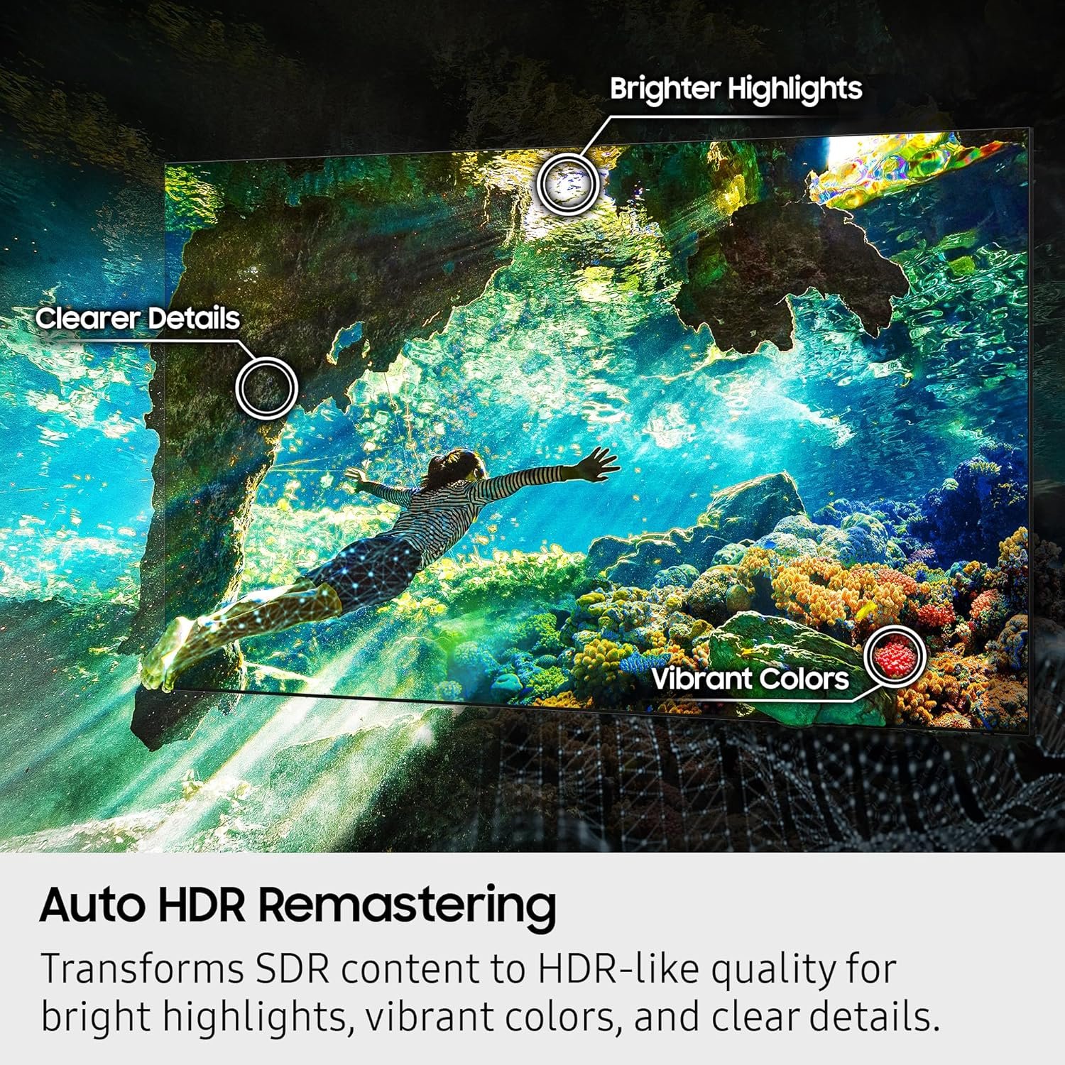 TRANSFORM CONTENT TO HDR-LIKE QUALITY: Intelligently transforms SDR content to HDR-like quality with brighter highlights, more vibrant colors, and clearer details for dazzling picture.