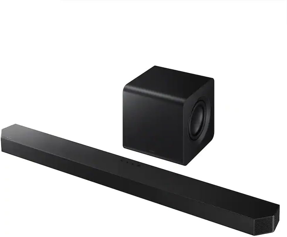 Seamless Connectivity & Smart Integration: Supports HDMI eARC with 4K HDR10+ passthrough, Bluetooth 5.3, and Wi-Fi streaming, plus built-in voice assistant compatibility and Q-Symphony for synchronized audio with compatible Samsung TVs.