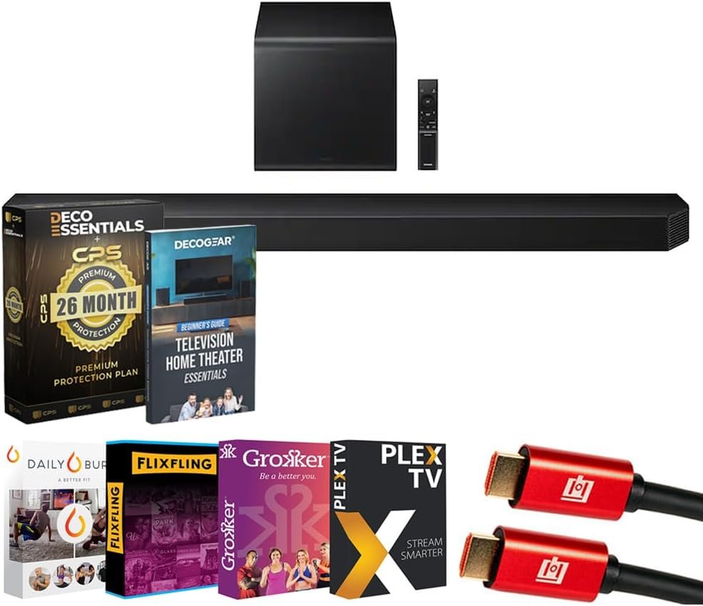 Samsung HWQ800H 5.1.2 ch. Q-Series Dolby Atmos Soundbar System (2026) Bundle with 26 Month CPS Protection Pack, HDMI Cable, Premiere Movies Streaming Pack and Deco Gear Home Theater Beginner’s Guide