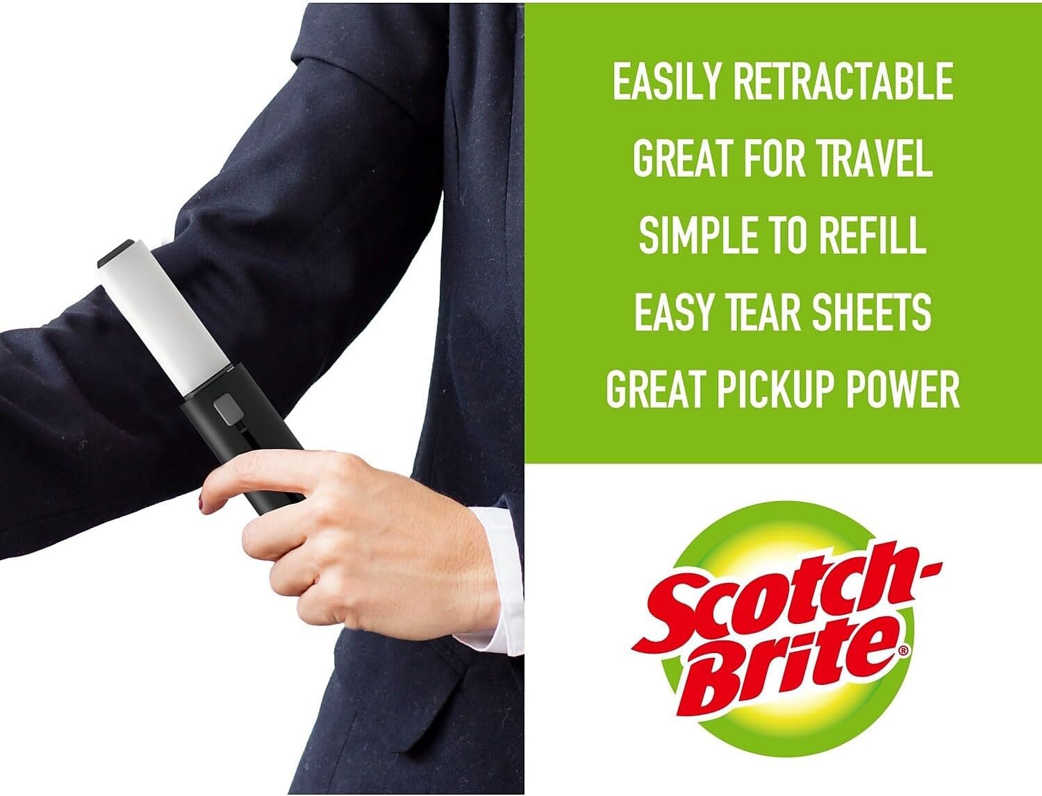 The only lint roller made with Scotch brand adhesive. Scotch Brite Lint Roller can be used on plants, coats, sweaters, dresses suits, formal wear, and more. Optimal adhesive removes lint and hair without damaging fabric. The sheets are guaranteed to tear cleanly every time. The Scotch Mini Roller is ideal for on the go removal of lint and pet hair.