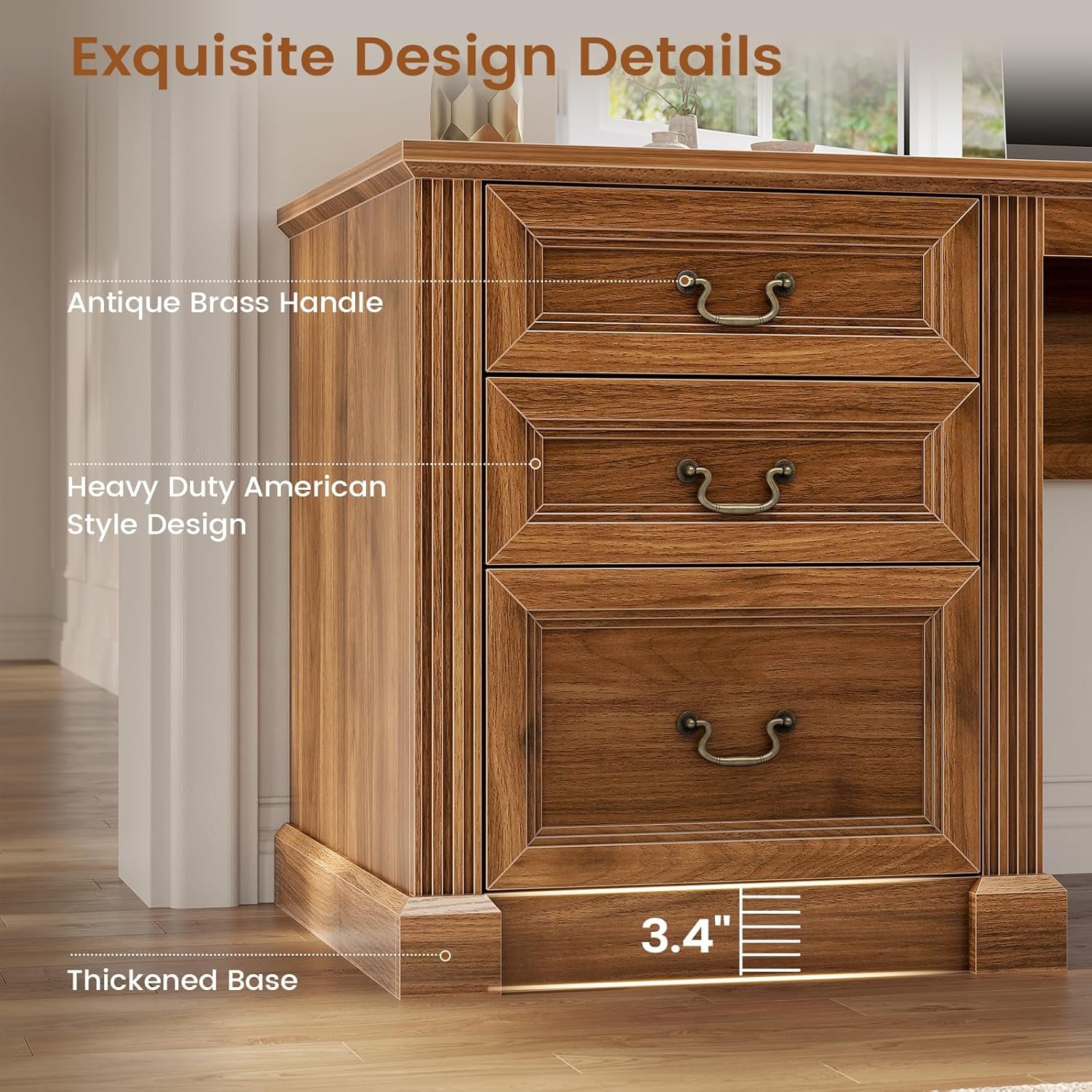 【Spacious Desk】67″L x 21.7″W desktop breaking the rules of the game. This large desktop is not only spacious but also provides you with more workspace, allowing efficiency and comfort to coexist. The desktop is 1″ thick that can hold 300 pounds and it is built to last. The beautiful clear grooves textures on the surfaces of this desk which have been specially hand-crafted by artisans show a simple elegance and atmospheric.
