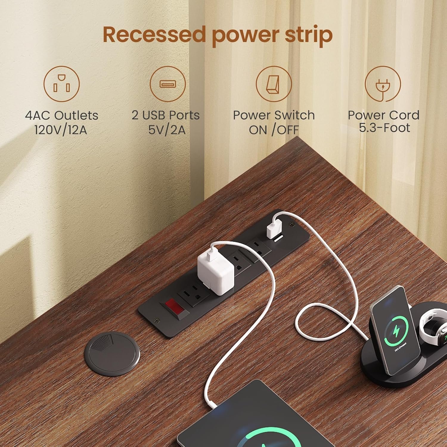【User Friendly】The standing desk includes a built-in power strip with 4 outlets & 2 USB Ports provides convenience for charging your gaming gear, tablet、printer or phone.Don’t worry about not having enough power sockets. Also includes an on-off switch, thanks to the on-off switch, one-button power off to ensure safe electricity use, which strengthens security.