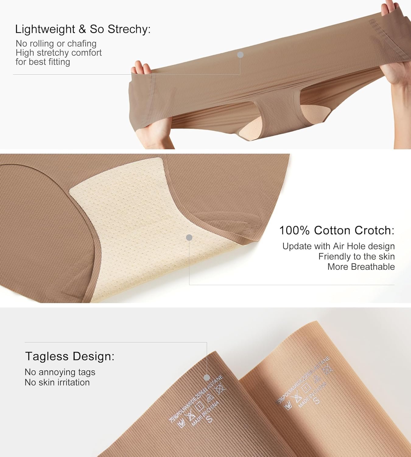 SHARICCA Womens Seamless Underwear No Show Hipster Panties Invisible Lightweight Nuage Bikinis Briefs Microfiber Pack