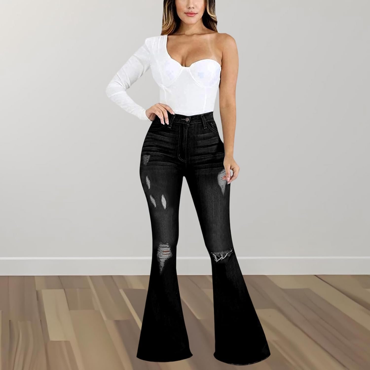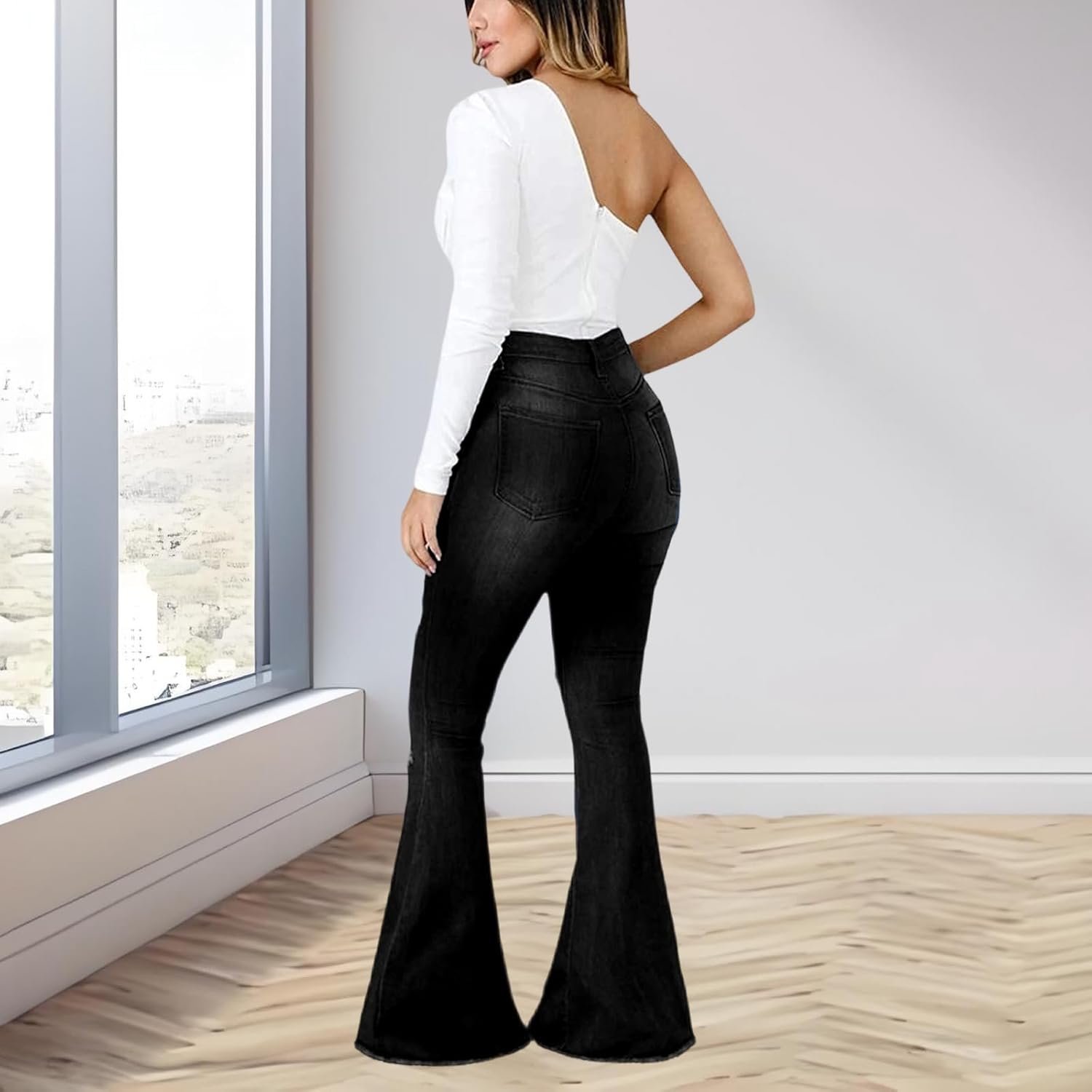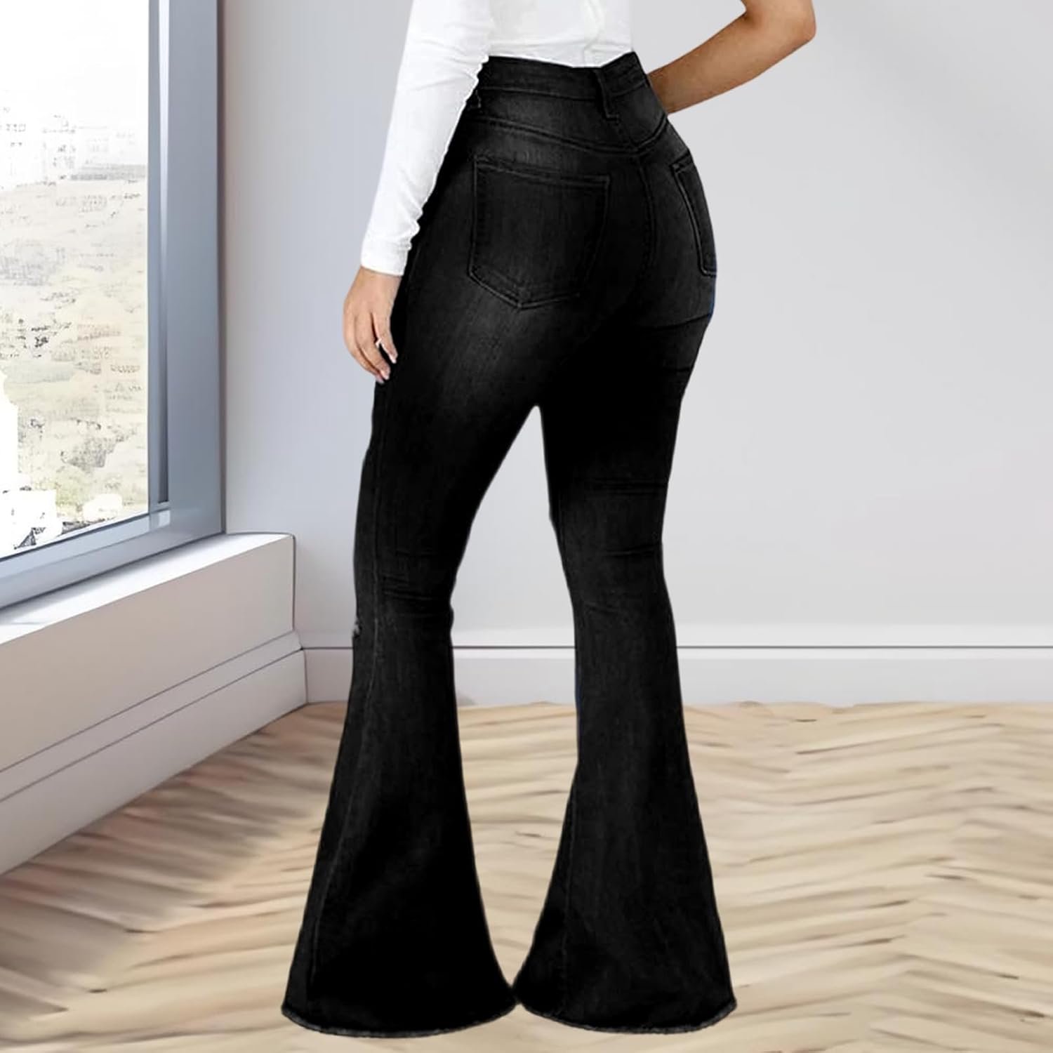 Be the first to review “shengfan Women’s Skinny Bell Bottom Jeans Elastic High Waisted Flared Jeans Raw Hem Wide Leg Denim Pants 70s Outfits”