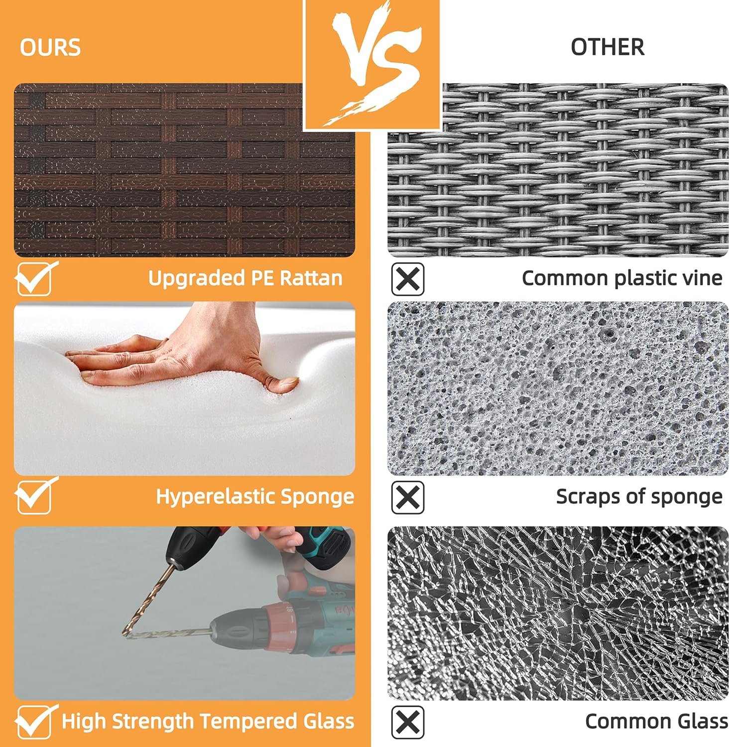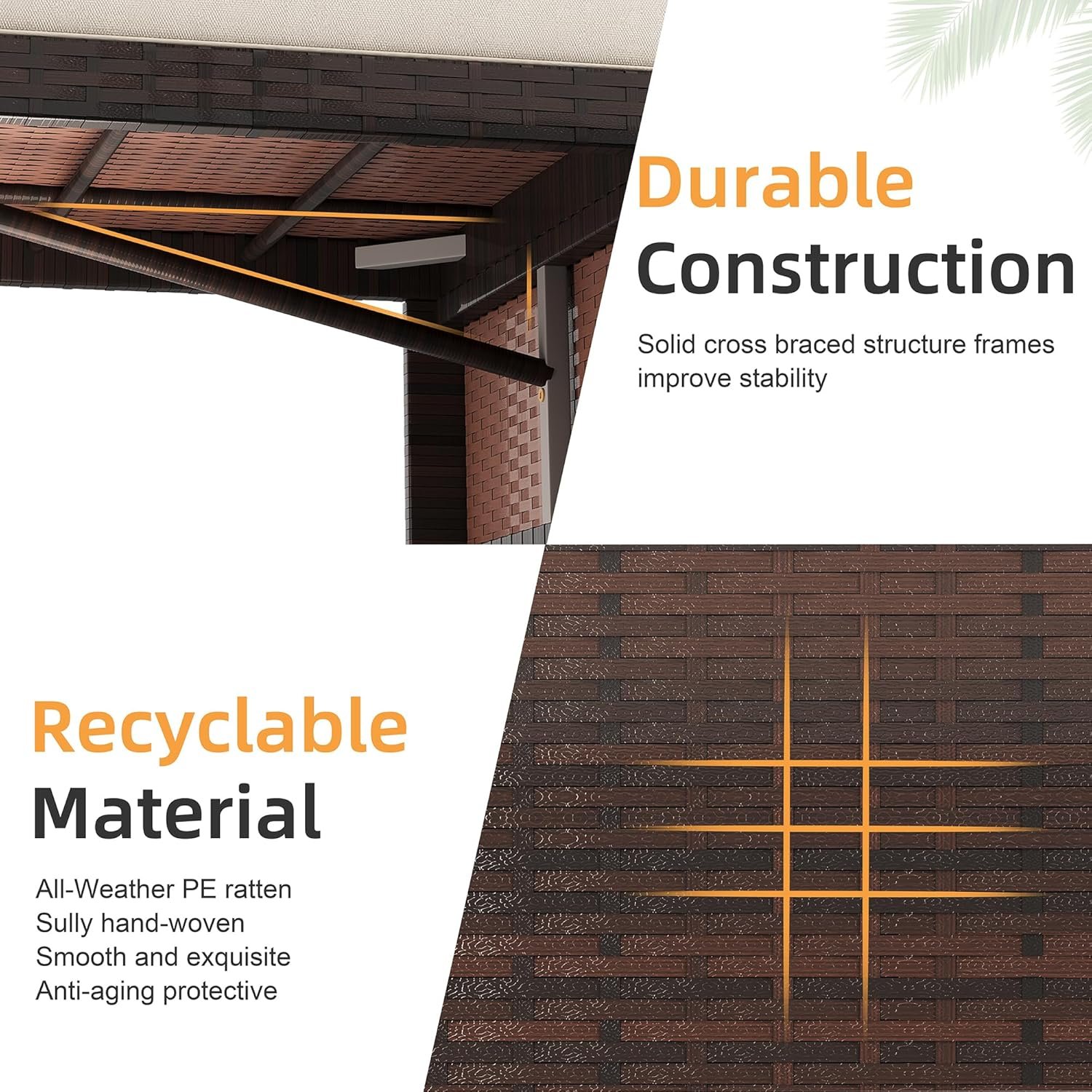 Sturdy&Long-lasting Patio Furniture: Solid metal structure make it super safe to sit in the sofa set. Added strong steel for the frame enhance the sturdiness and allow the sofa to support heavy people about 400lbs. PE Wicker rattan is strong enough to survive inclement weather and guarantee the Patio Furniture Sets has a long service life.