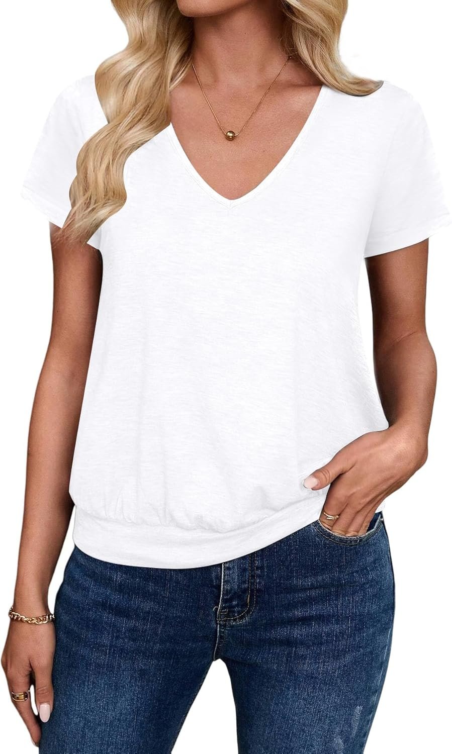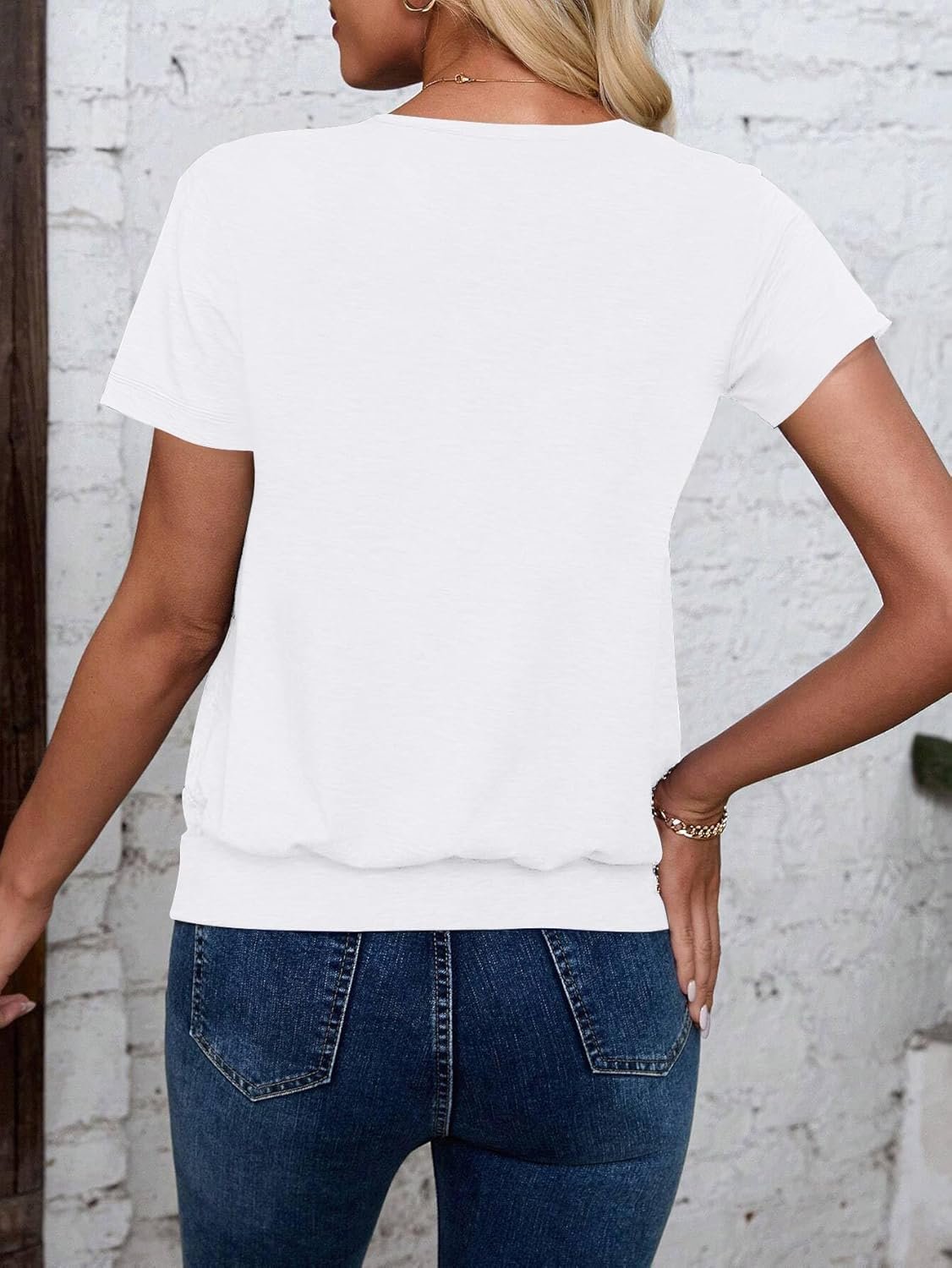 Womens V Neck T Shirts Banded Bottom Top Summer Basic Tops