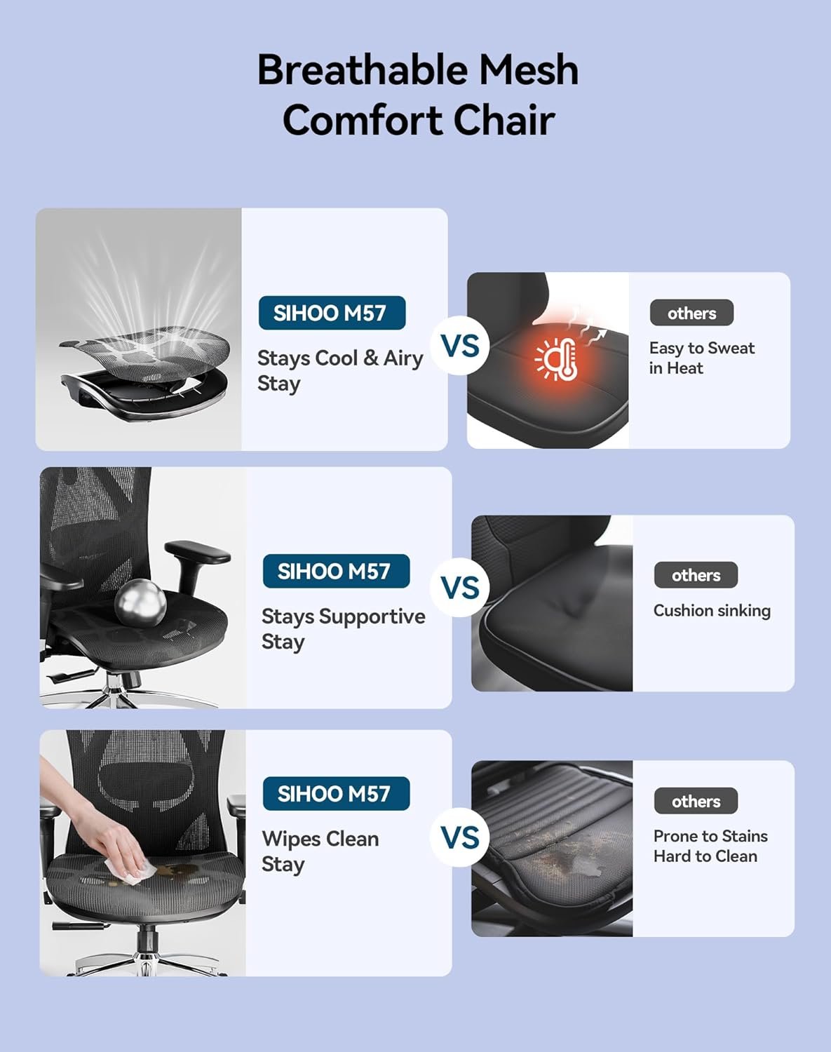 WARRANTY & SUPPORT YOU CAN COUNT ON – Every SIHOO office chair comes with a 3-year warranty and easy 30-day returns. If anything goes wrong, just contact our customer service—we’ll reply within 24 hours and send free replacement parts if needed. Your comfort and satisfaction are our top priorities.Your comfort and satisfaction are our top priorities.