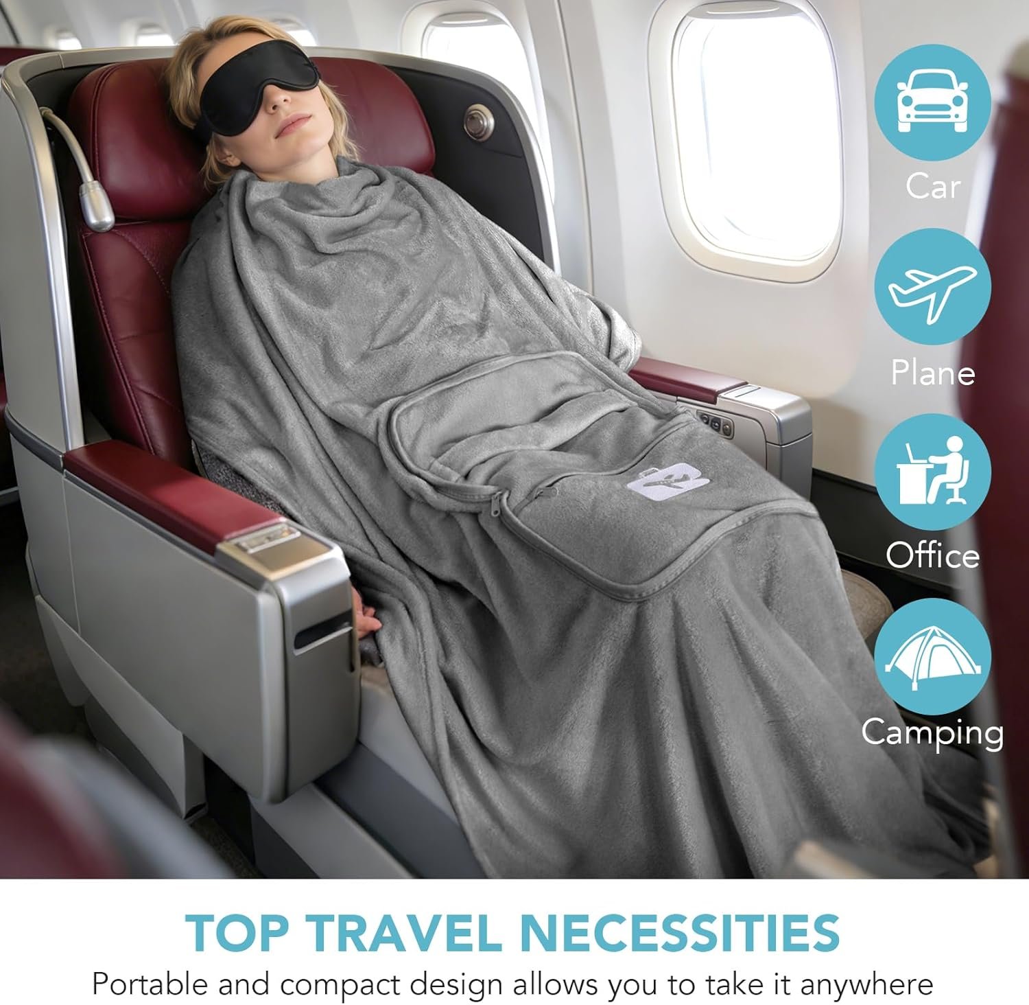Premium Fabric: Crafted from flannel fabric, it offers warmth and comfort, is easy to clean, lint-free, and provides cozy insulation without bulk. Ensures warmth and comfort throughout long flights, road trips, airport layovers, camping, and outdoor adventures