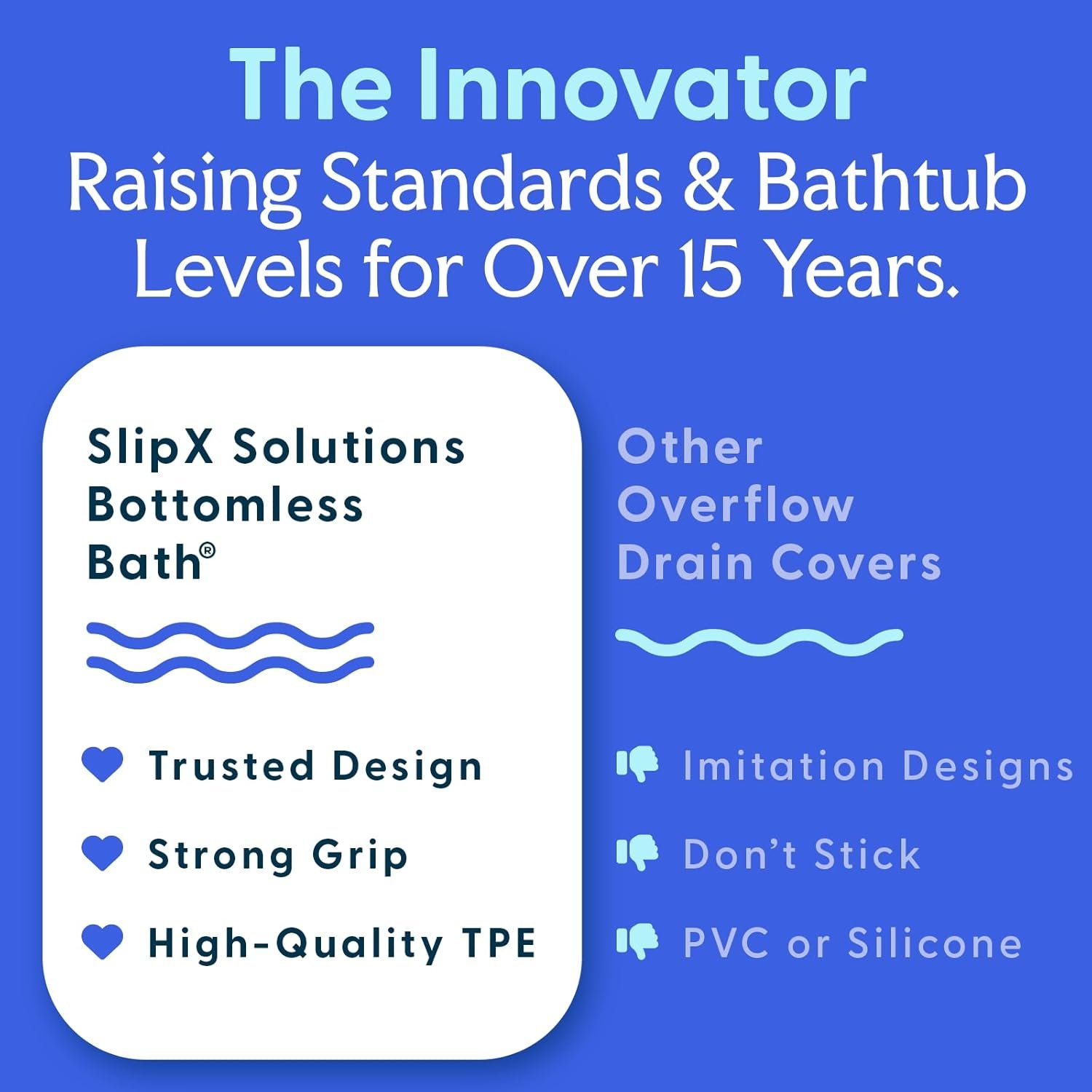 This bathroom overflow tub drain cover makes the perfect Birthday and Christmas gifts for a mom who has everything! The Bottomless Bath is also backed by the SlipX Solutions Peace of Mind Promise. Simply reach out to our friendly Customer Care Team via Amazon with any questions or concerns after using it.
