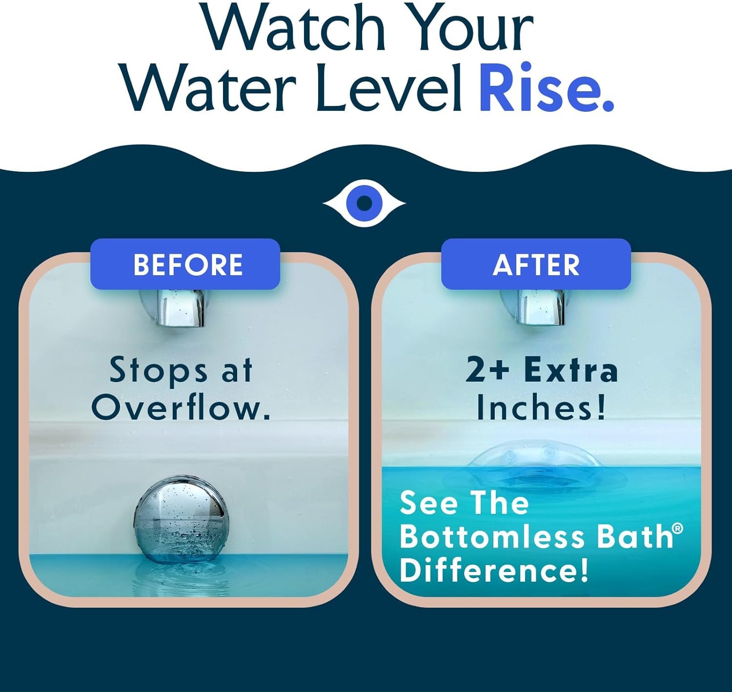 Perfect Fit for Most Drains: Measuring 4-inch inner diameter and 2 in. deep, the Bottomless Bath fits commonly found bathtub overflow drains, like toggle/trip lever, flat, or snap drain types.