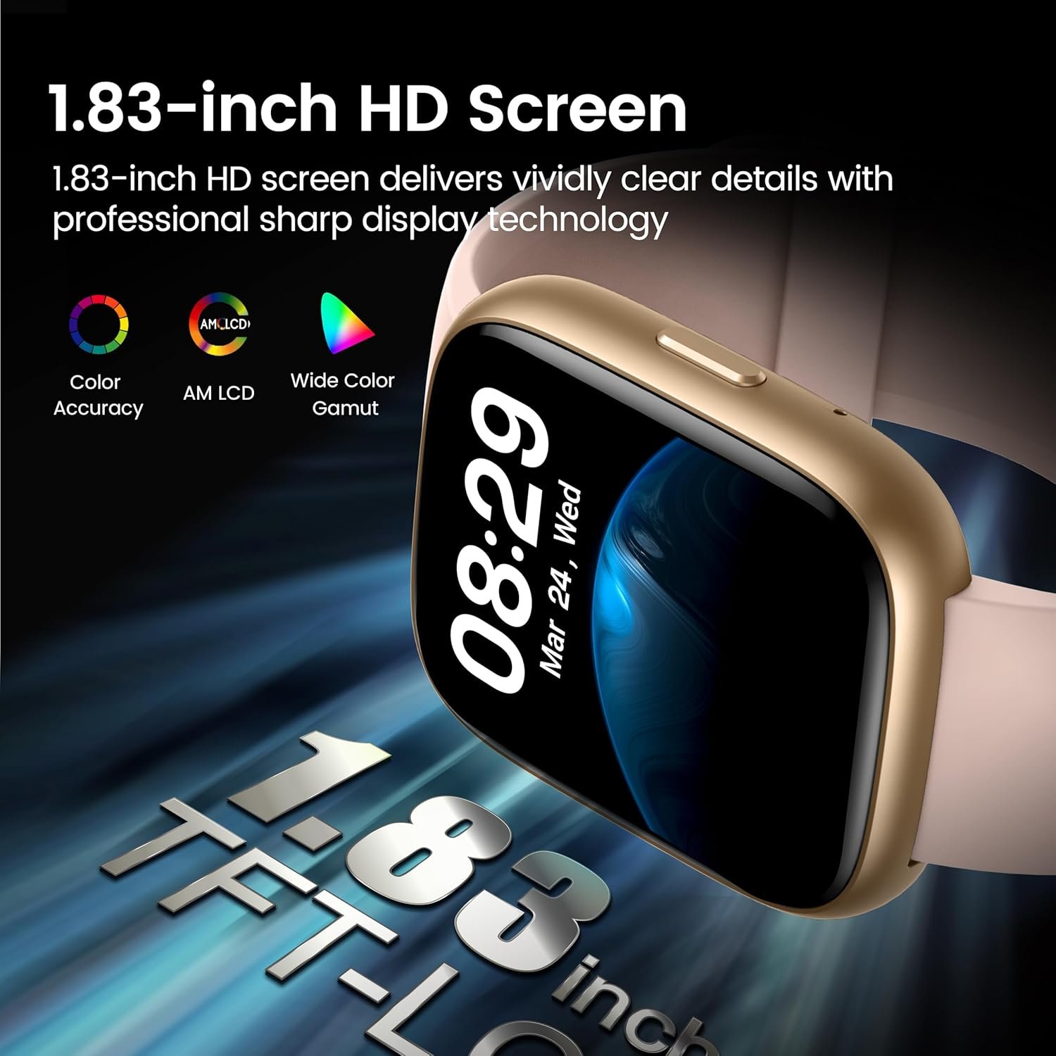 1.83″ HD Display and Personalized Customization: IDW26 smart watches for men women feature a 1.83-inch HDdisplay paired with 3D tempered glass, boasting a resolution of up to 320×385 for excellent image quality and high touch sensitivity. The 4-level adjustable brightness ensures clear visibility even under bright sunlight. Through the “VeryFit” app, users gain access to over 130 stylish watch faces and the ability to create custom designs, allowing for personalized expression