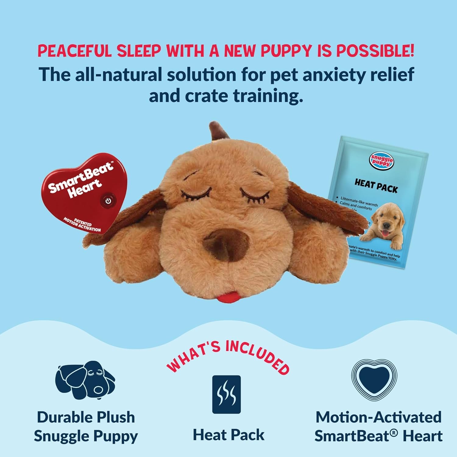 Snuggle Puppy Original Heartbeat Puppy Toy with Real-Feel Pulse & Heat Pack, Calming Sleep Aid for Puppy Anxiety, Crate Training, First Nights & New Puppy Transition – Biscuit