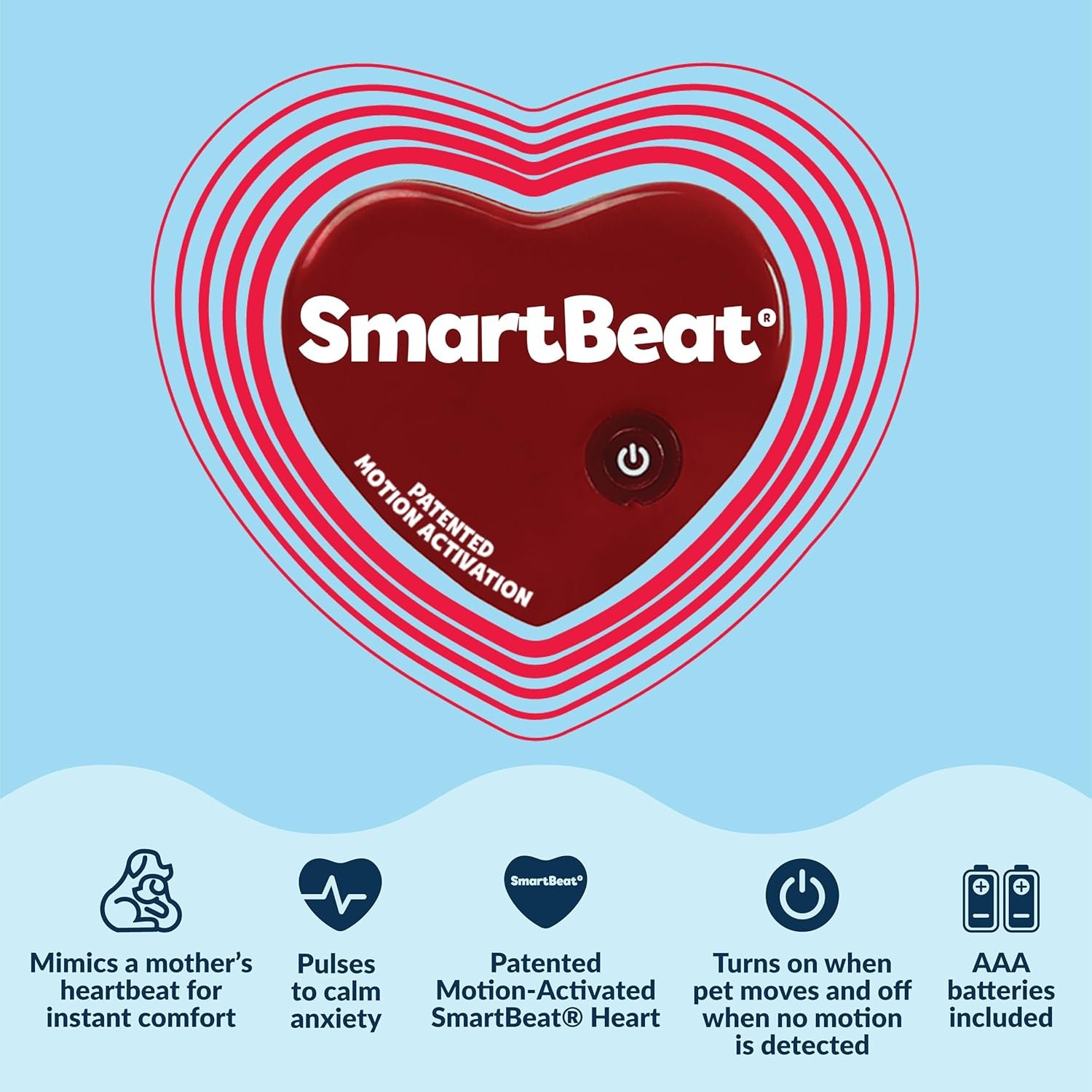 Real-Feel heartbeat and heat pack: Includes a battery-powered heartbeat component and removable heat pack designed to provide a rhythmic pulsing sensation during rest, crate time, or overnight use