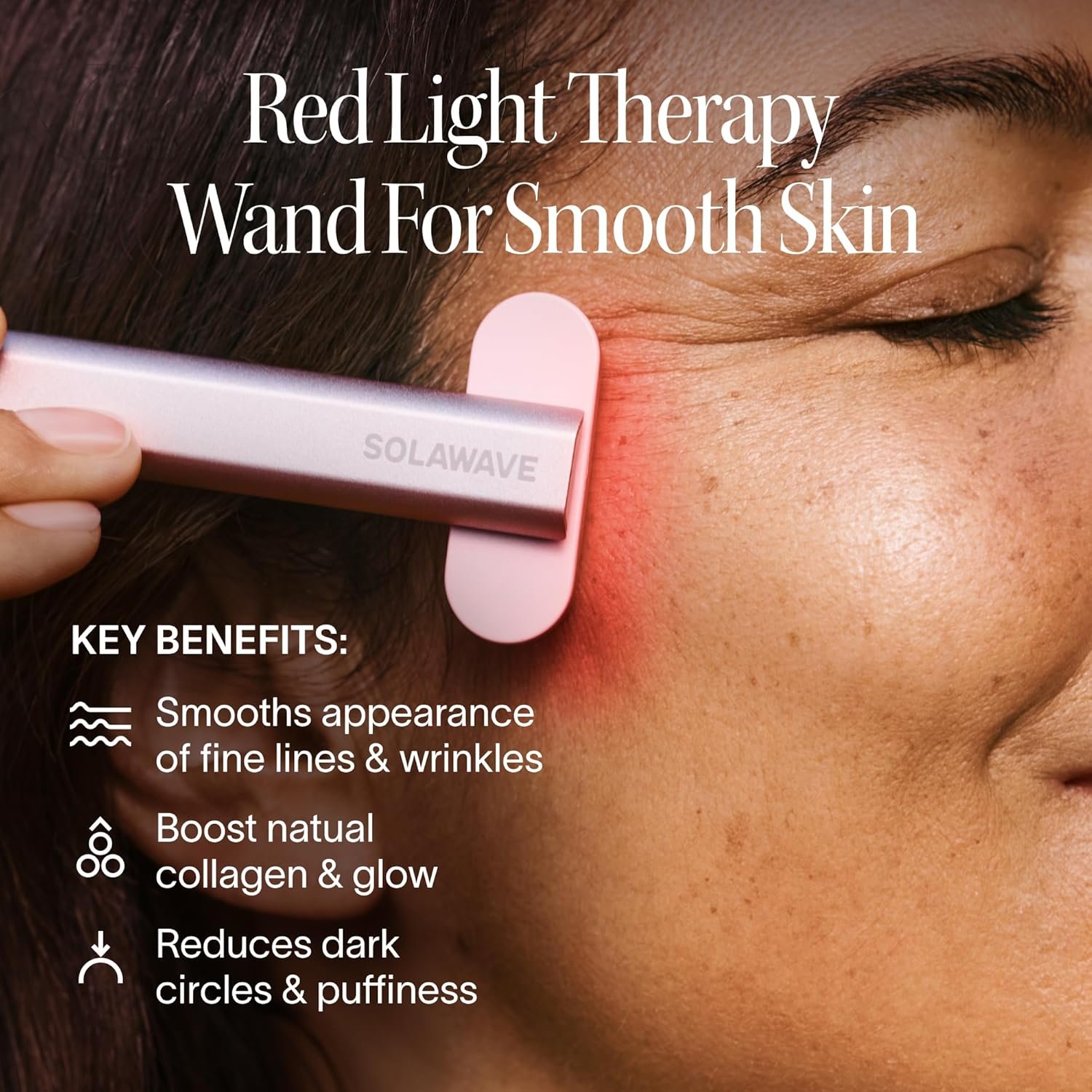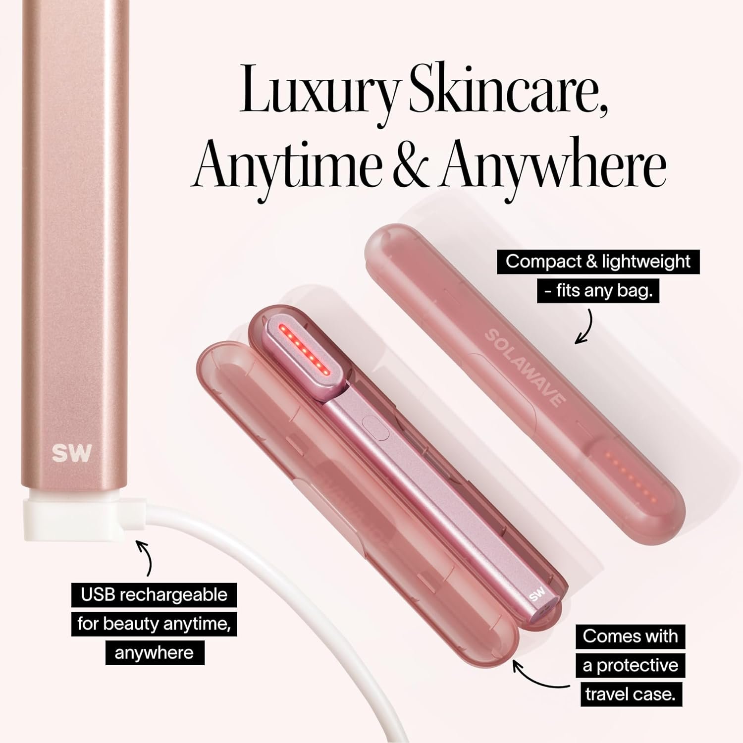 Solawave 4-in-1 Red Light Therapy Wand for Face & Neck | Beauty Device with Galvanic Current, Massager & Warmth | Anti-Aging, Wrinkle Reduction, Skin Tightening, Depuffing & Rejuvenation (Rose Gold)