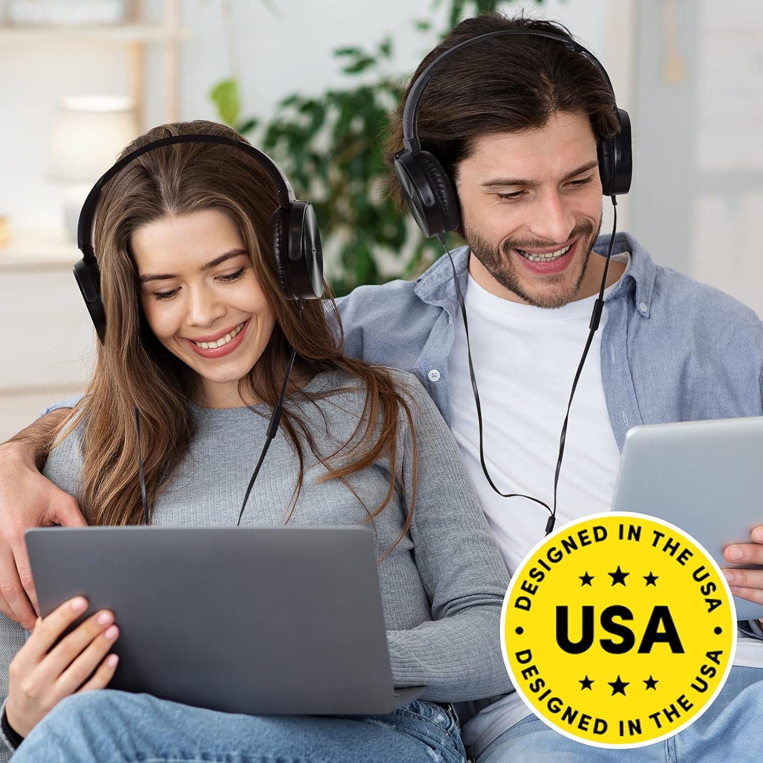 PREMIUM QUALITY & COMFORT YOU ARE SURE TO ENJOY: Our headphone and microphone headsets do not only deliver crystal clear sound, but are also extremely comfortable to wear. Their lightweight, adjustable design with soft ear cushions provides a perfect fit for both adults and kids . Plus, the bendable material construction allows for greater durability. Furthermore, all our headphones feature swivel cups so that you can stack and store them easily!