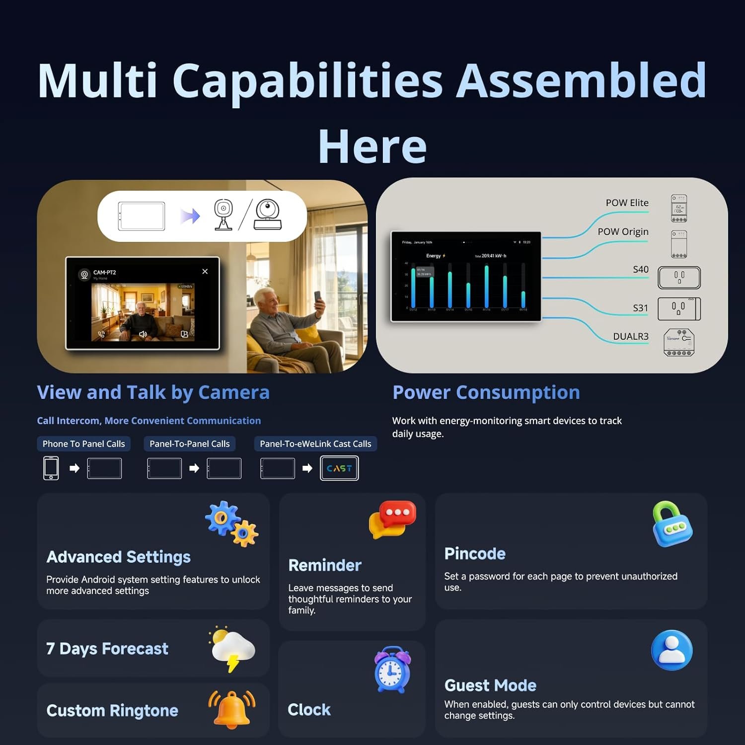 【All in One Control Panel With】 Enjoy a larger view with the 4.7-inch display that Control your home with just a tap—whether it’s monitoring energy use, viewing live cameras, adjusting the thermostat, managing your lighting or even browsing the web