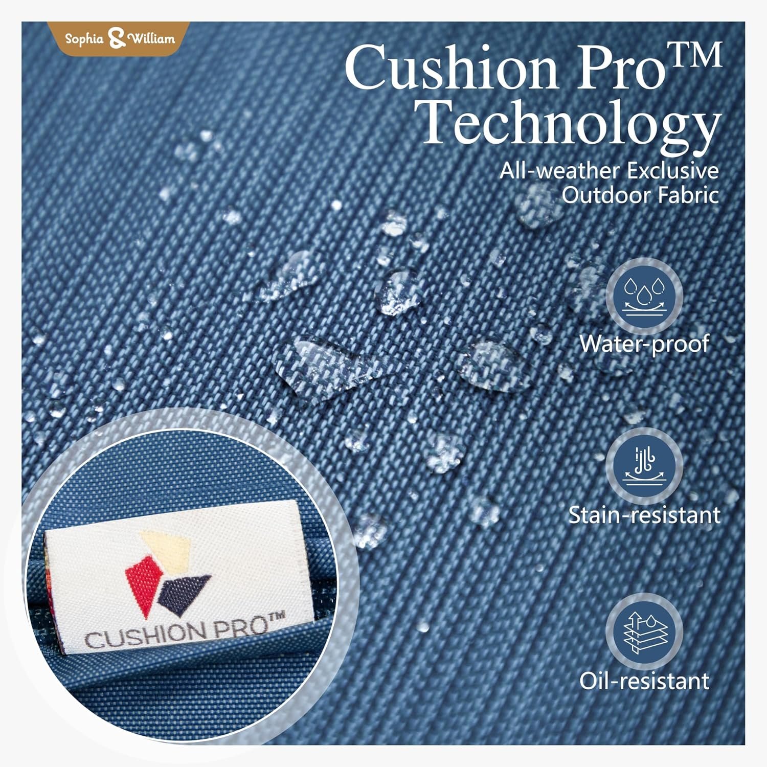 Cushion-Pro Technology: Experience effortless maintenance with the Sophia & William conversation set. Crafted with premium olefin, our Patent Cushion Pro outdoor fabric boasts exceptional water-repellent, soil-release, and stain-resistant properties. Simply use a cleaning spray and watch the stains vanish, leaving your furniture looking as good as new