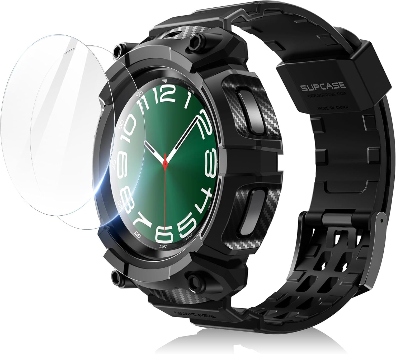 SUPCASE for Samsung Galaxy Watch 6 Classic 47mm Case with Band (Unicorn Beetle Pro), [2 Pack Screen Protector] Rugged Protective Cover with Adjustable Strap Band for Galaxy Watch 6 Classic, Black