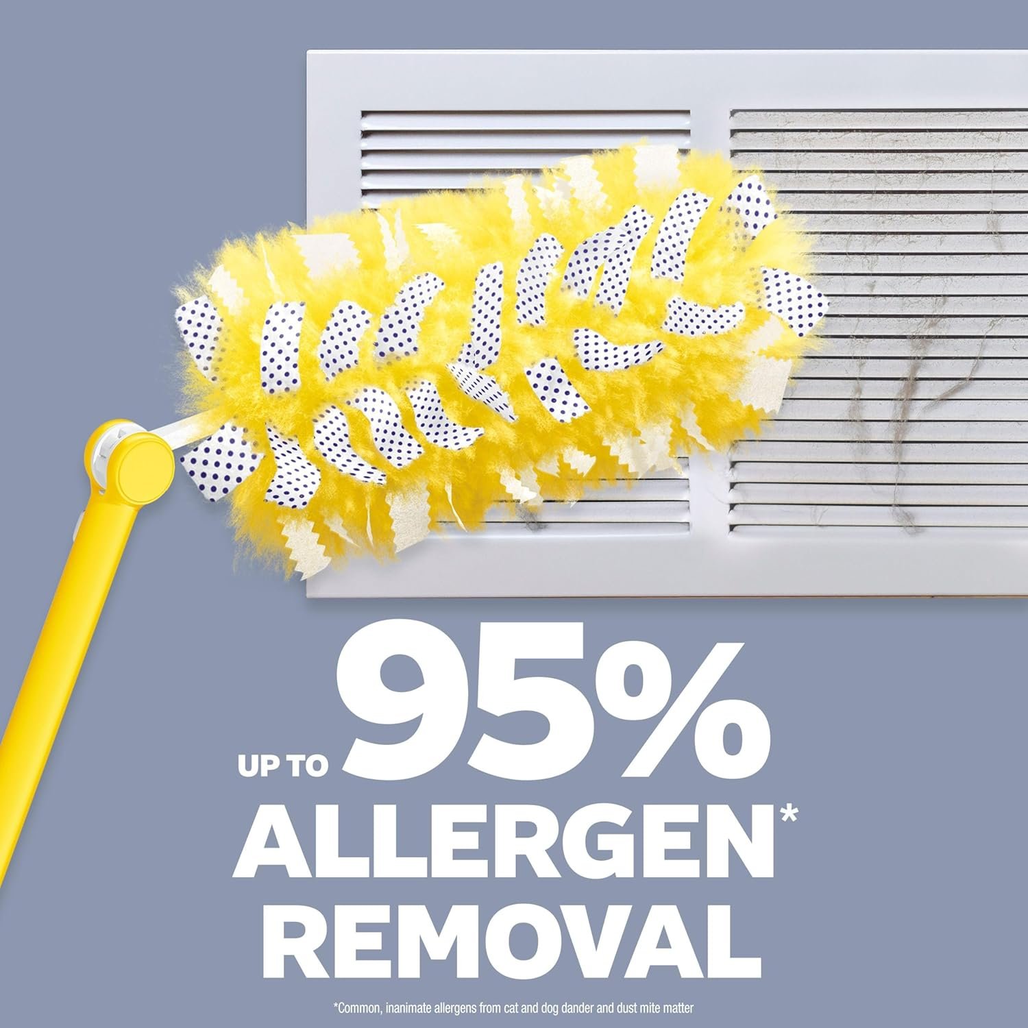 SWIFFER HEAVY DUTY DUSTER KIT with a 3 FT EXTENDER HANDLE picks up 5X MORE* dust & allergens.** Heavy Duty Duster’s 360° DESIGN has DUST-BUSTING STRIPS to break down layers of built-up dust, and thousands of fluffy, SPECIALLY-COATED FIBERS that grab onto dust in every direction. 3FT EXTENDABLE HANDLE makes it easy to clean hard-to-reach places, like fan blades, atop bookcases, and light fixtures. Easily clean blinds and around knickknacks. Refill Dusters available. *vs. feather duster after 9 uses **common inanimate allergens from cat and dog dander & dust mite matter