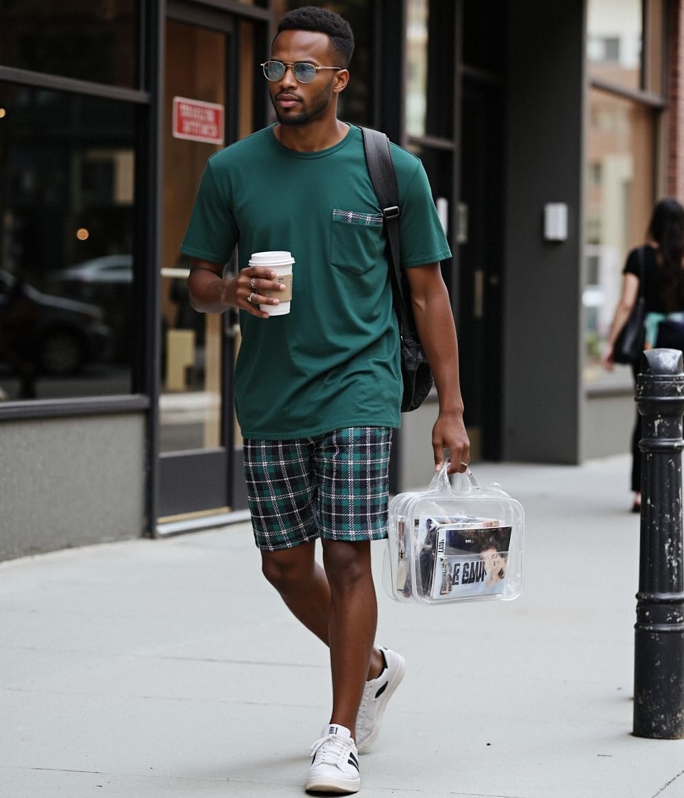 Sykooria Mens Pajamas Set Cotton Pajamas Shorts Set Short Sleeve Pjs Sets Soft Sleepwear S-XXL