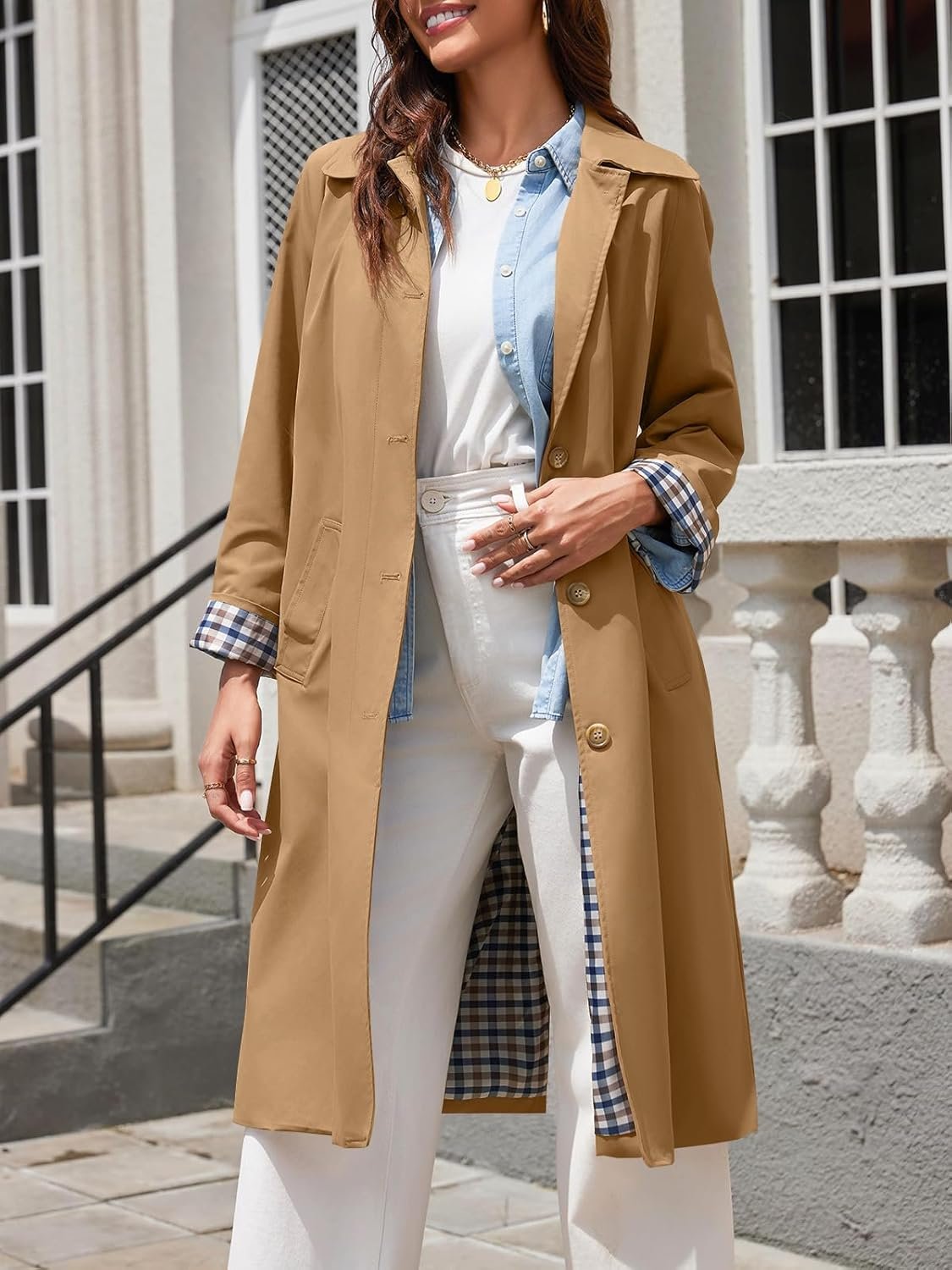 Tankaneo Womens Long Trench Coat Single Breasted Oversized Windproof Overcoat Fashion Outerwear