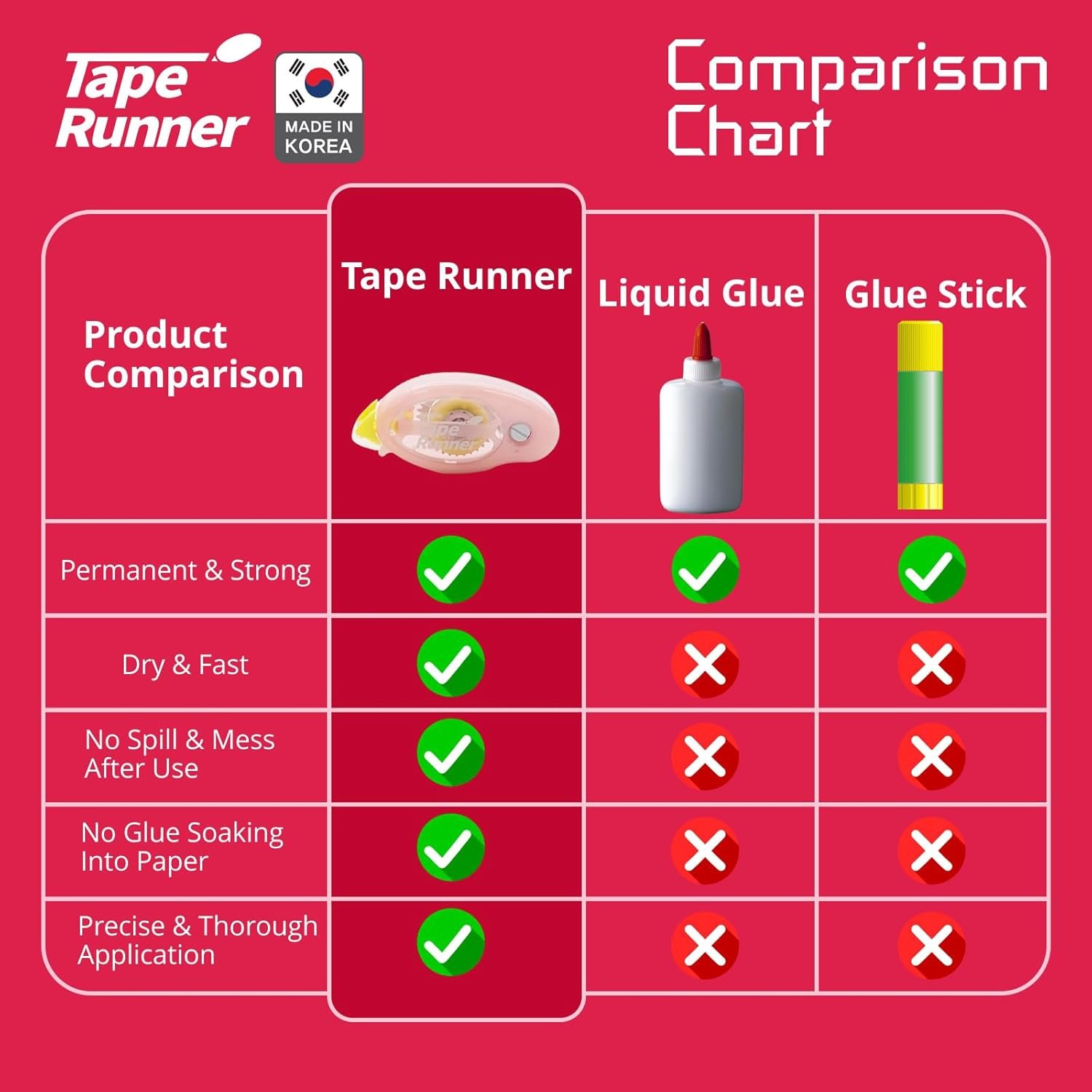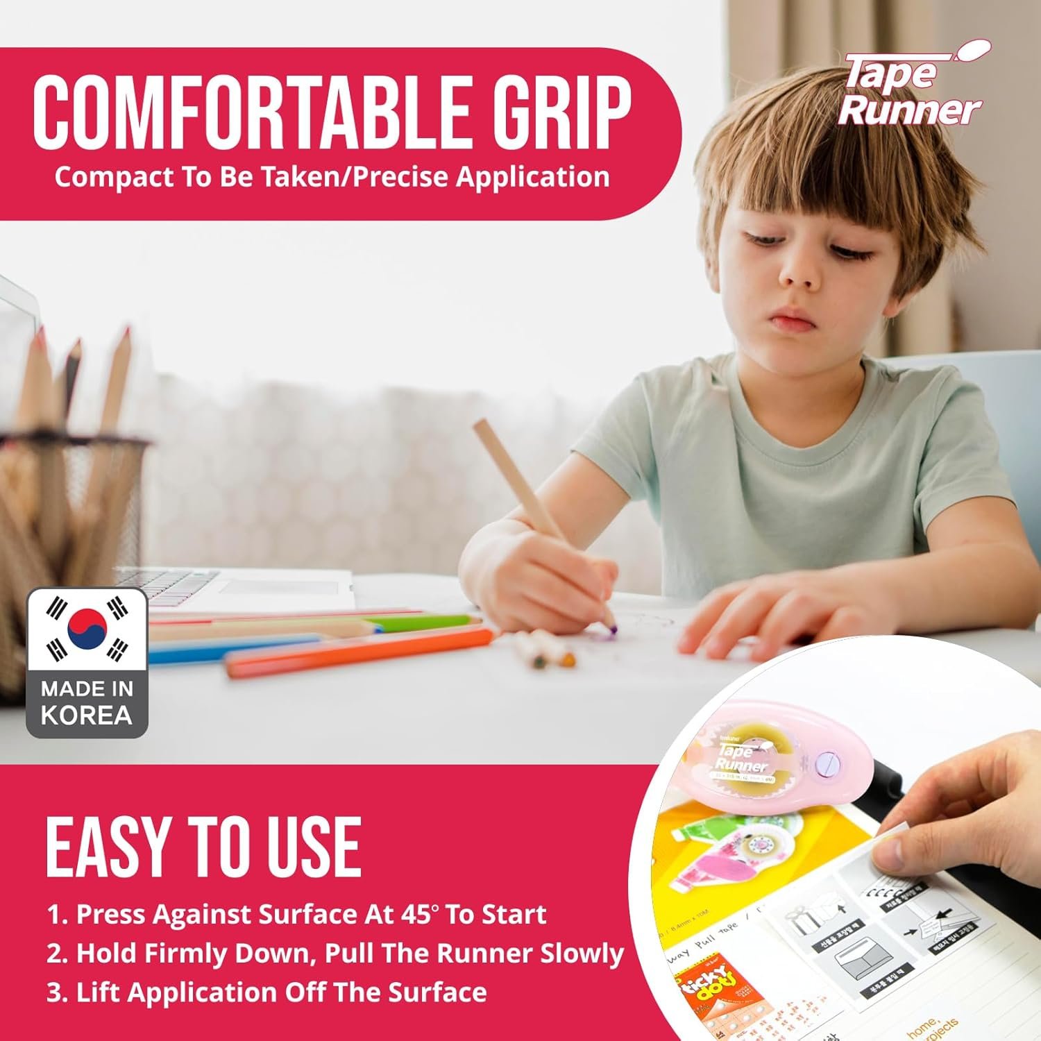 EASY APPLICATION; Balune’s double sided adhesive tape includes a handy tape runner, allowing you to measure the precise amount and reduce wastage; Better still, the double sided tape dispenser is ergonomically designed, making it easy to grip for people of all ages