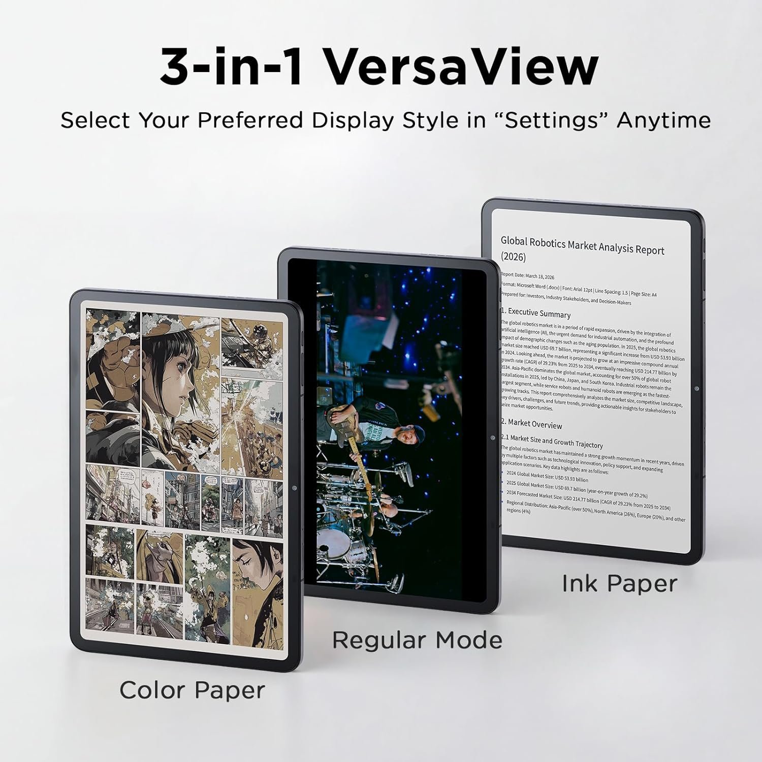 3-in-1 VersaView Modes for Every Need: The TCL NXTPAPER 11 Gen 2 tablet lets you switch between three display modes directly in Settings. Regular Mode offers crisp, vibrant visuals for streaming, video calls, and daily tasks. Ink Paper Mode transforms the screen into an e-reader-like display for extended reading and note-taking. Color Paper Mode delivers soft, low-saturation colors ideal for digital art, comics, and creative work